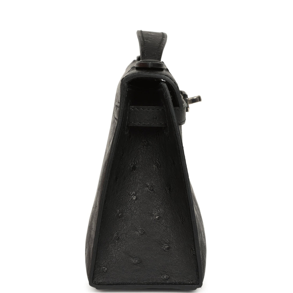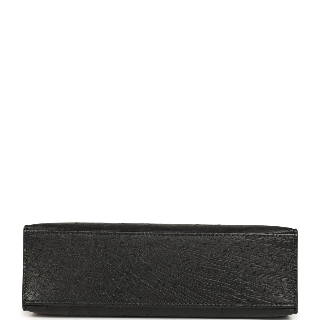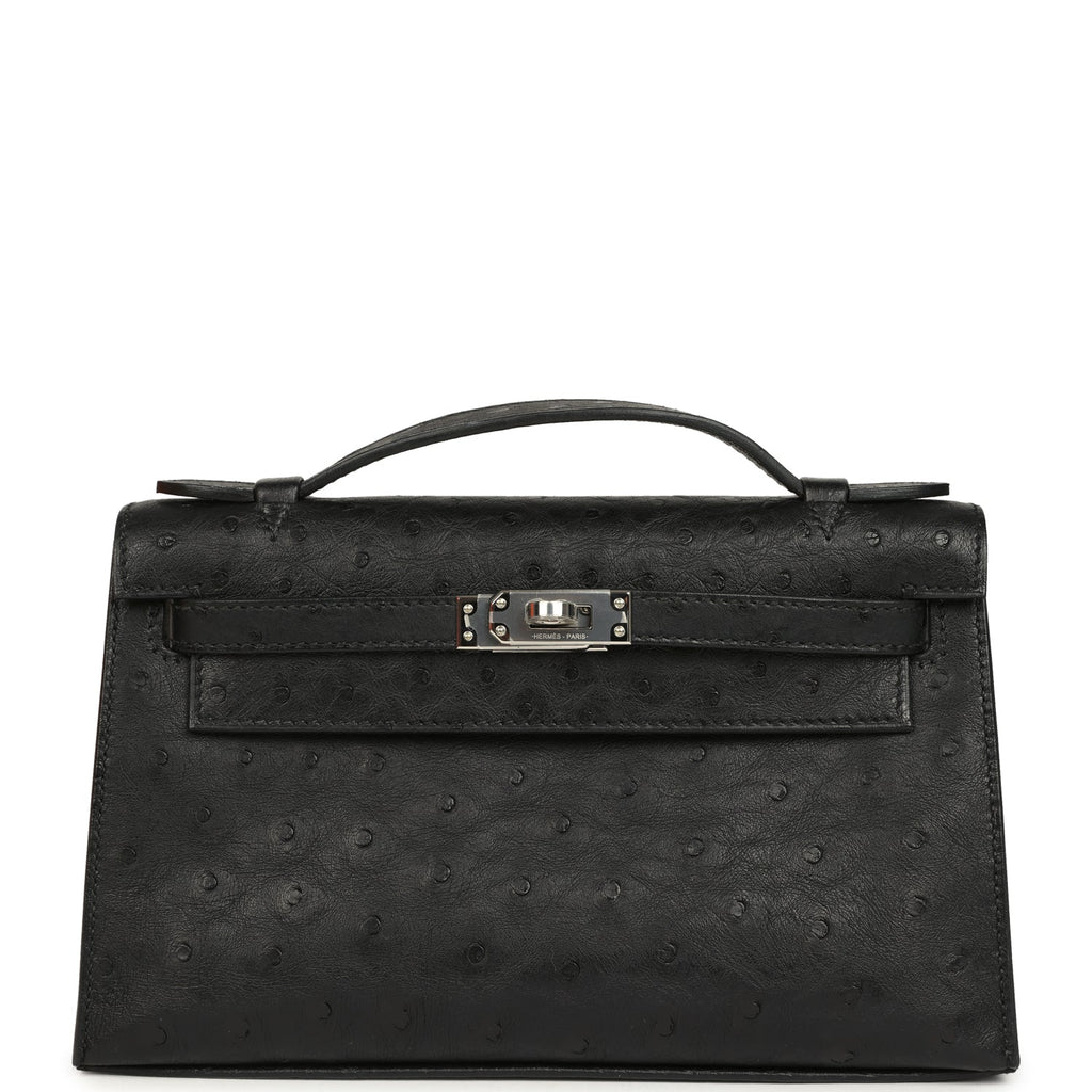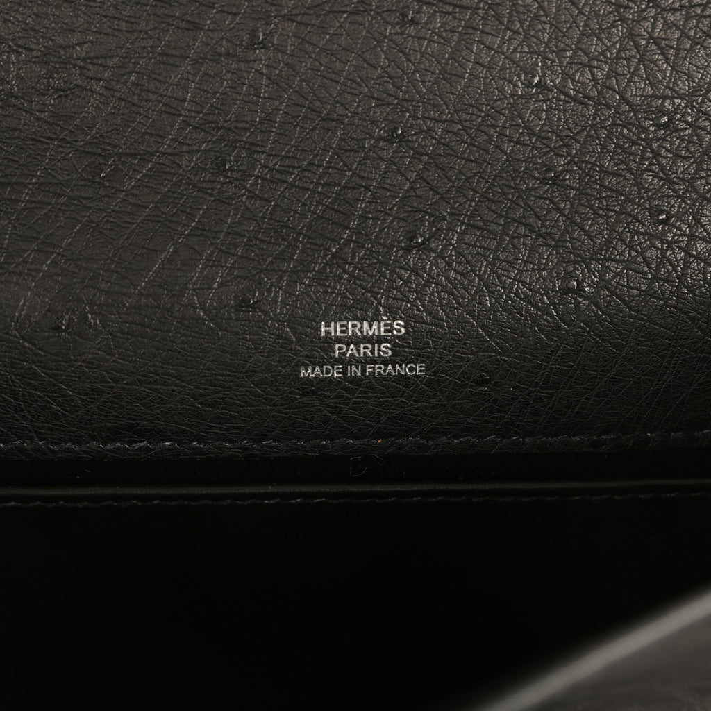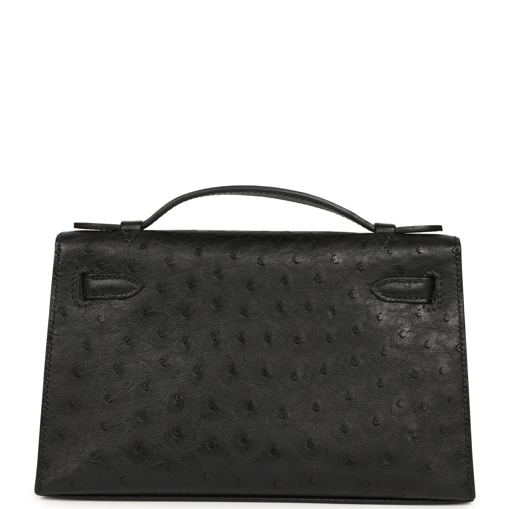 Hermes Kelly Pochette Black Ostrich Palladium Hardware