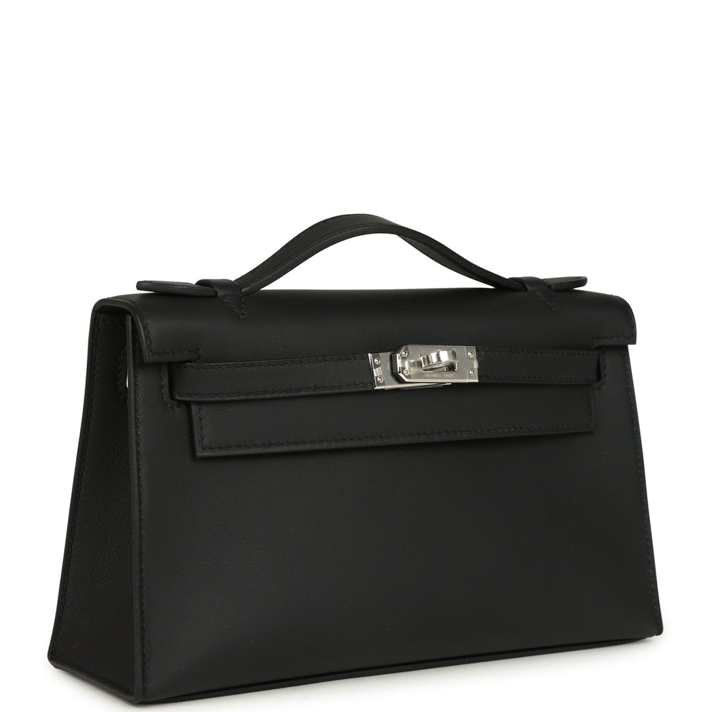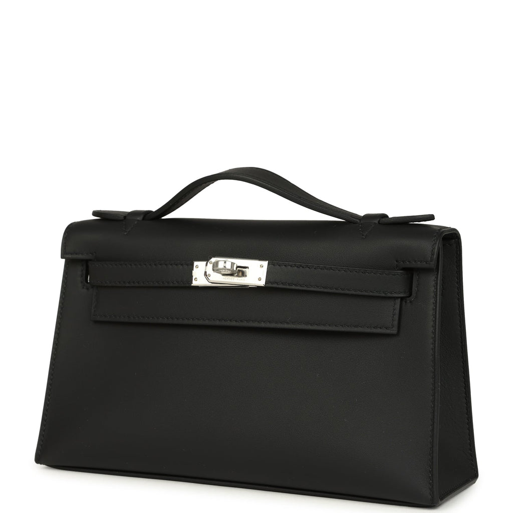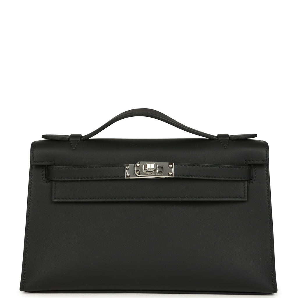 Hermes Kelly Pochette Black Swift Palladium Hardware