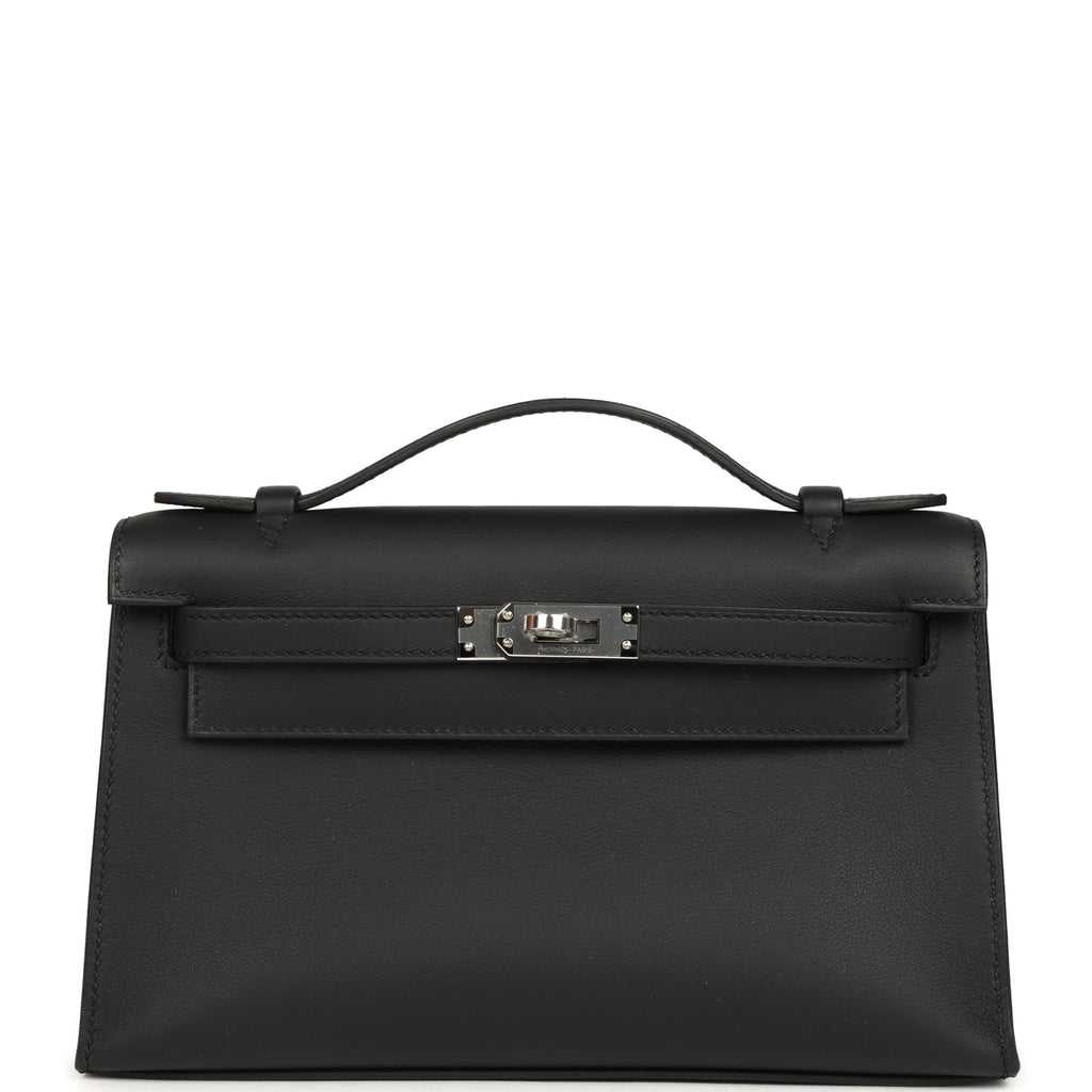 Hermes Kelly Pochette Black Swift Palladium Hardware