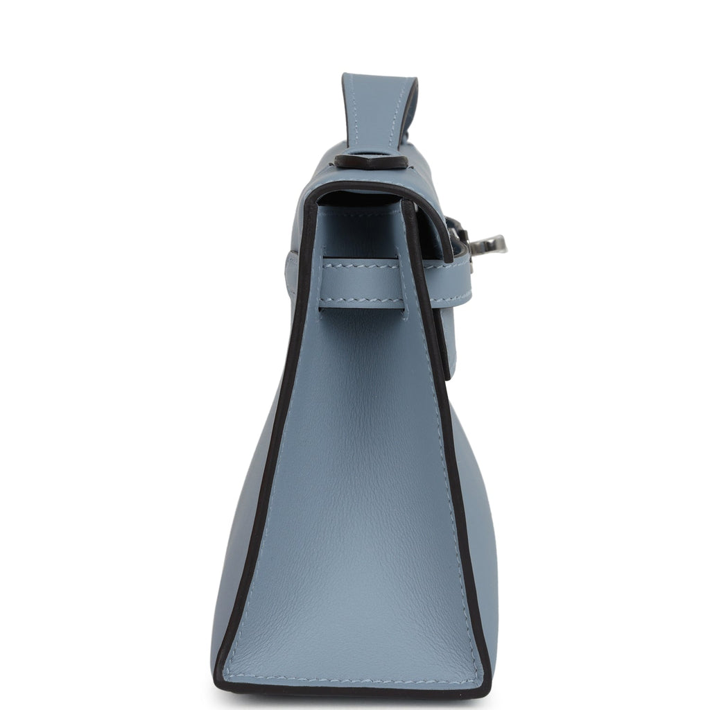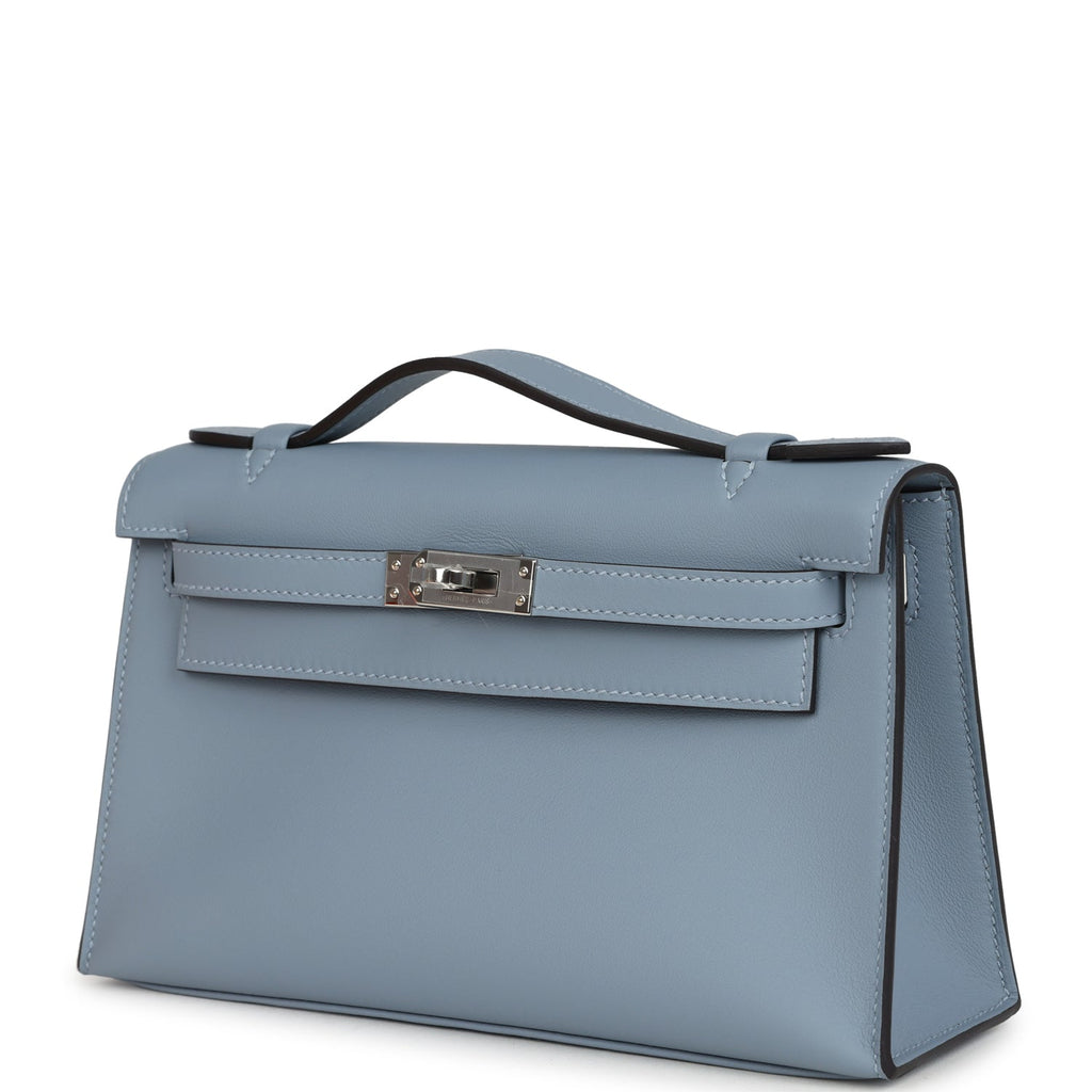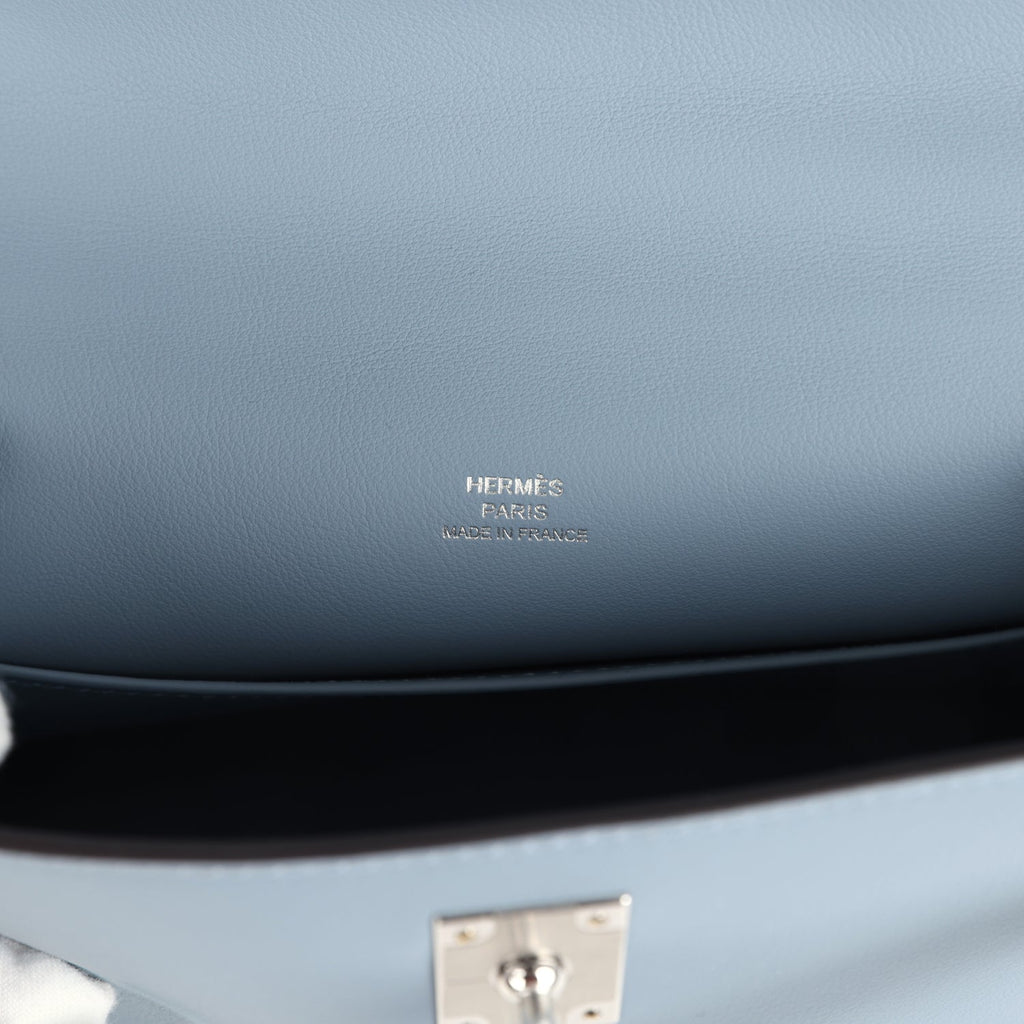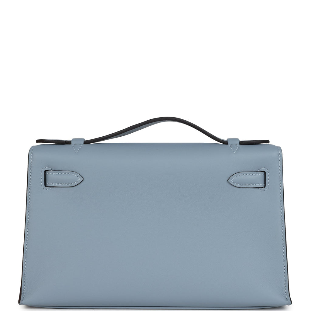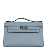 Hermes Kelly Pochette Bleu Lin Swift Palladium Hardware