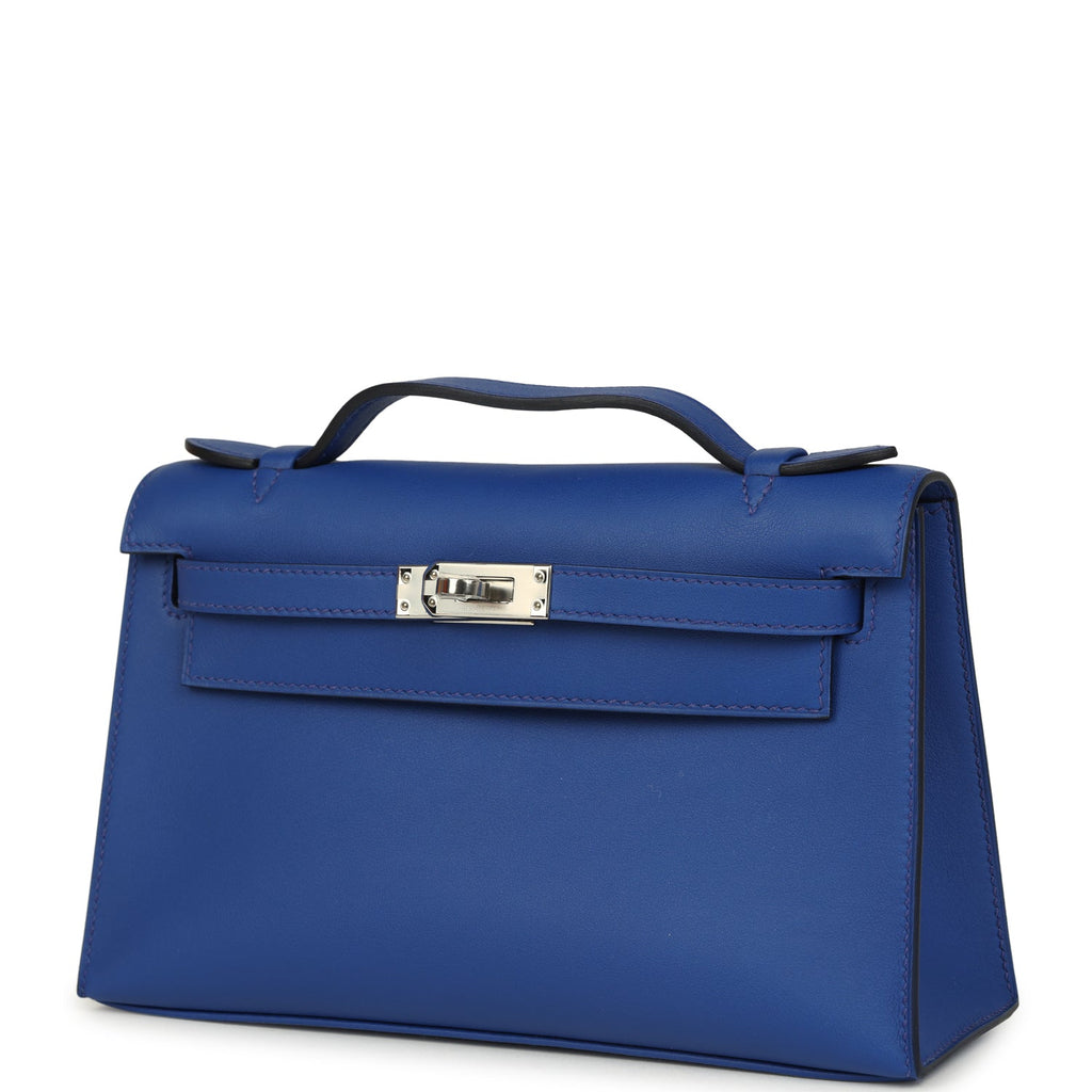 Hermes Kelly Pochette Bleu Royal Swift Palladium Hardware