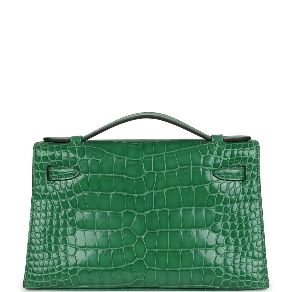 Hermes Kelly Pochette Cactus Shiny Alligator Gold Hardware