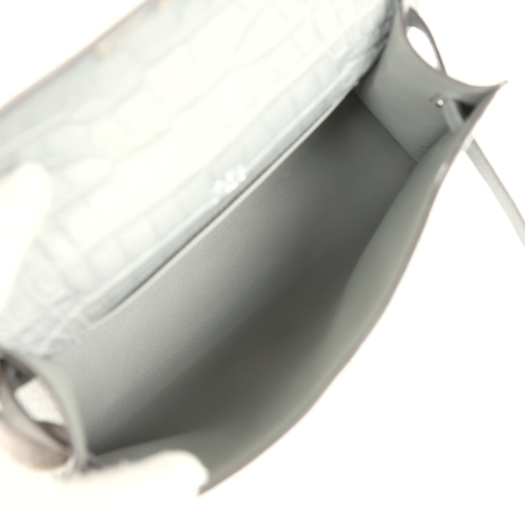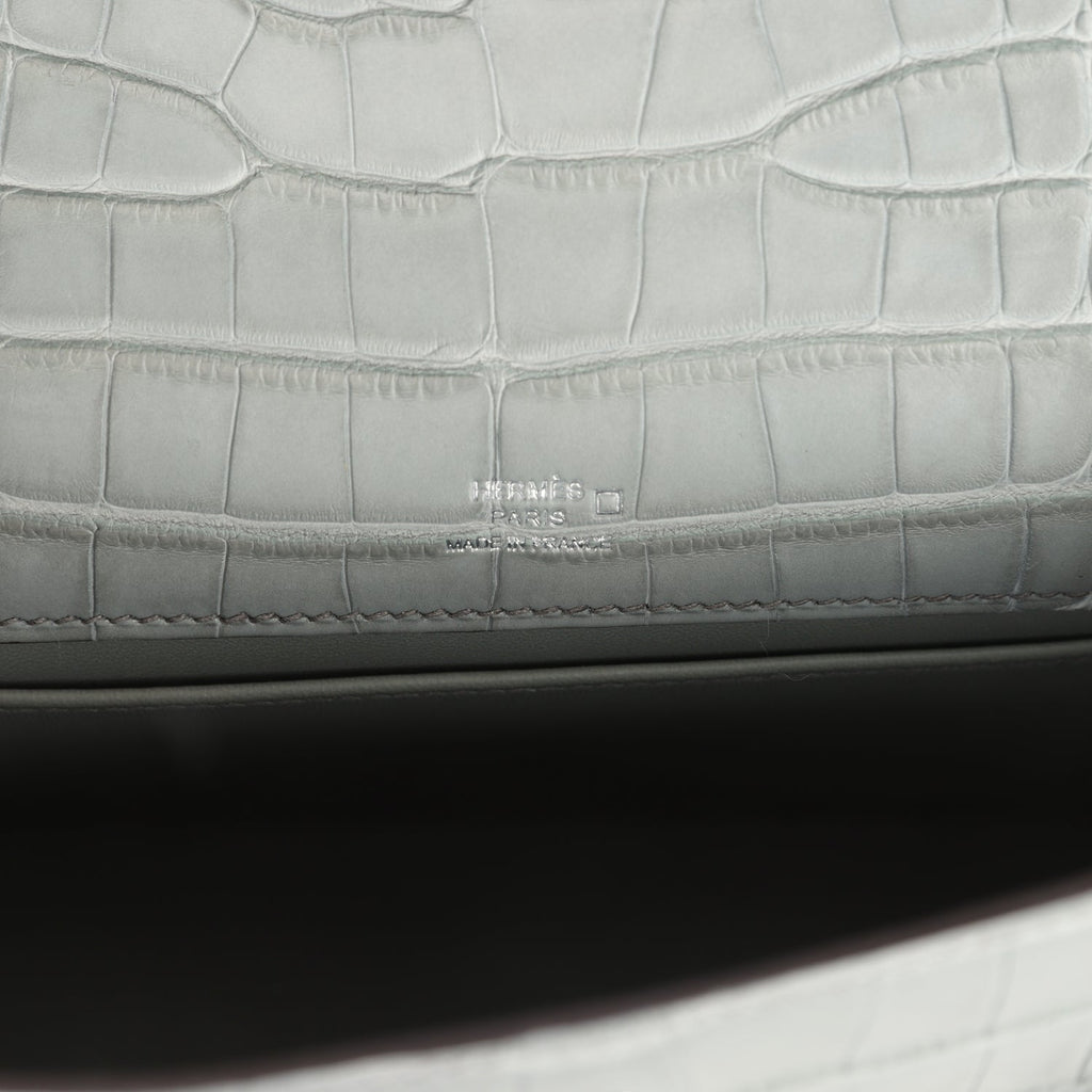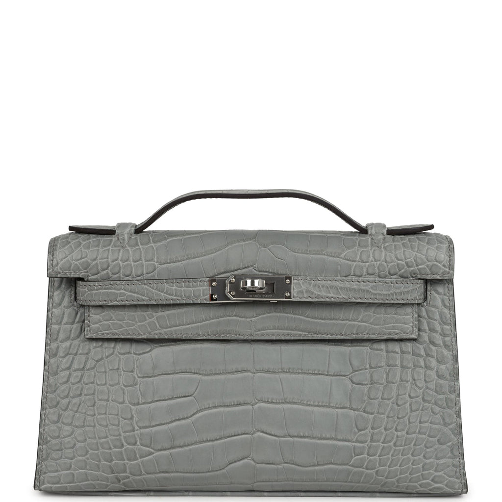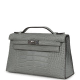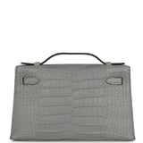 Hermes Kelly Pochette Gris Ciment Matte Alligator Palladium Hardware