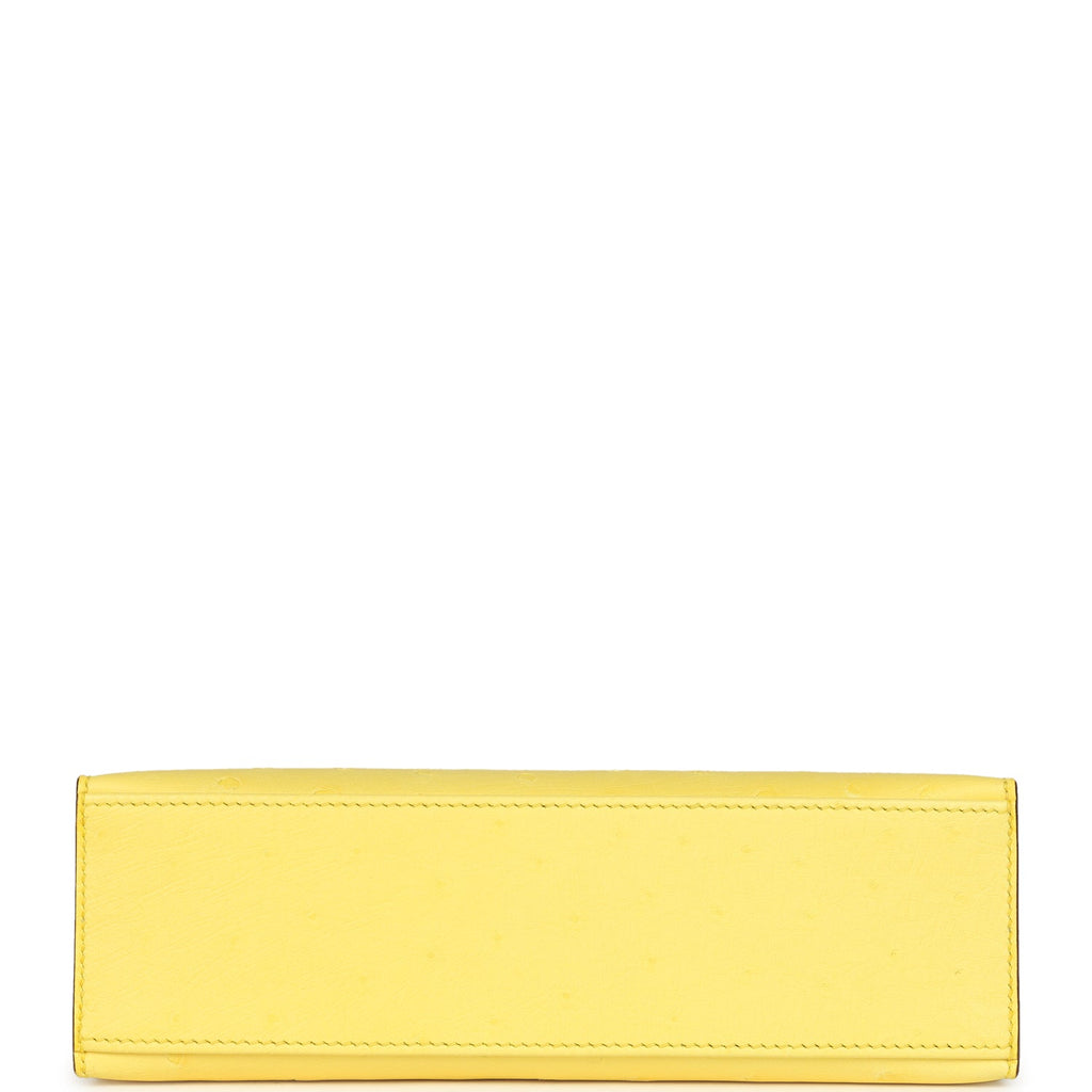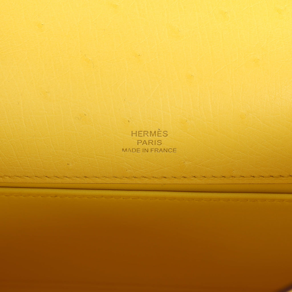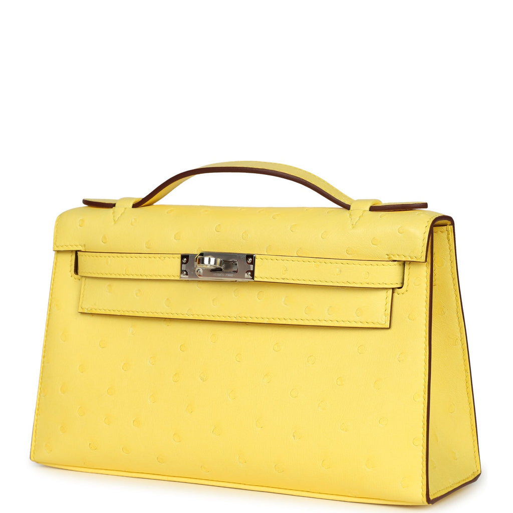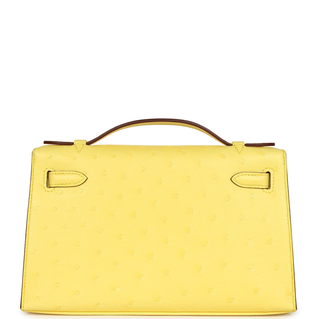 Hermes Kelly Pochette Jaune Citron Ostrich Palladium Hardware
