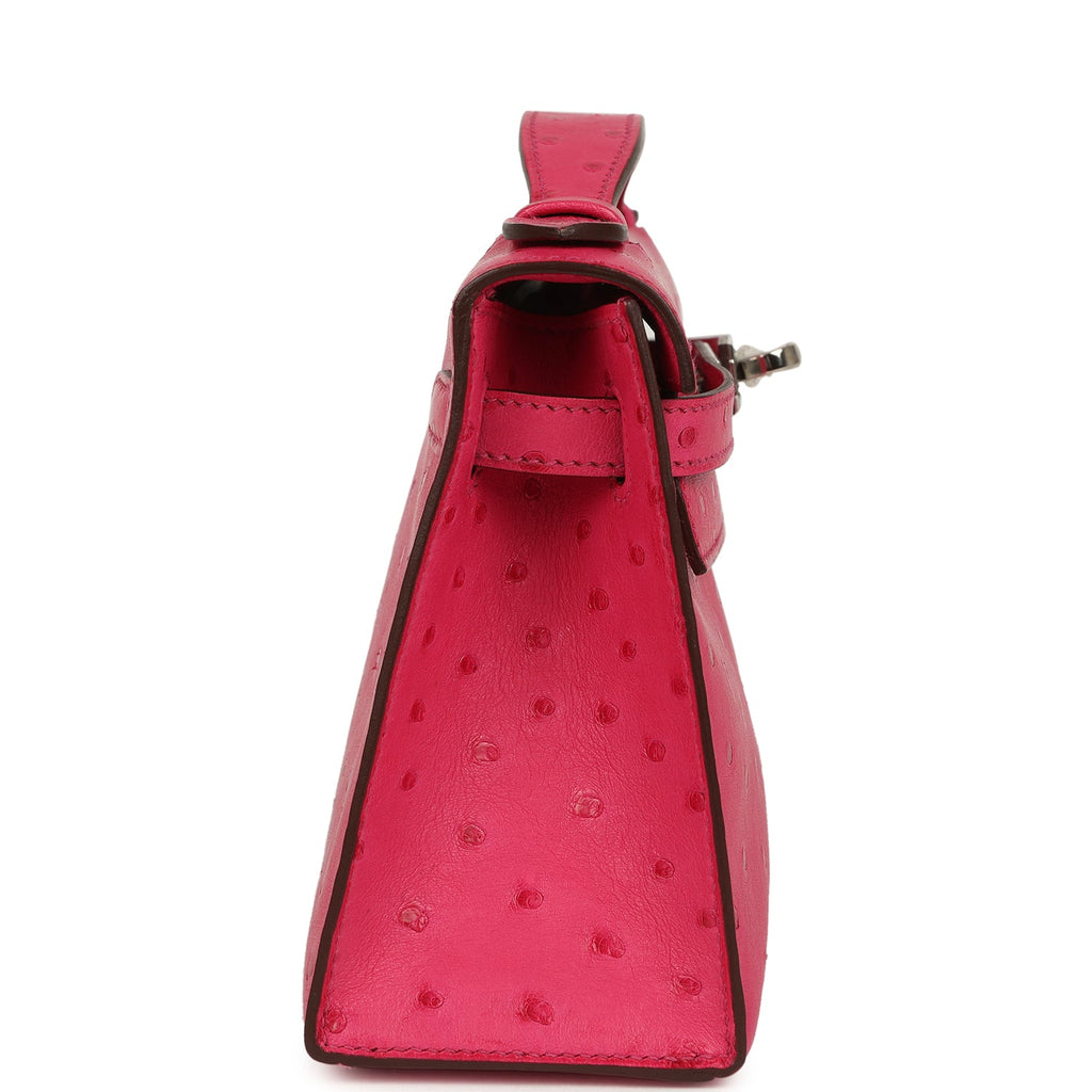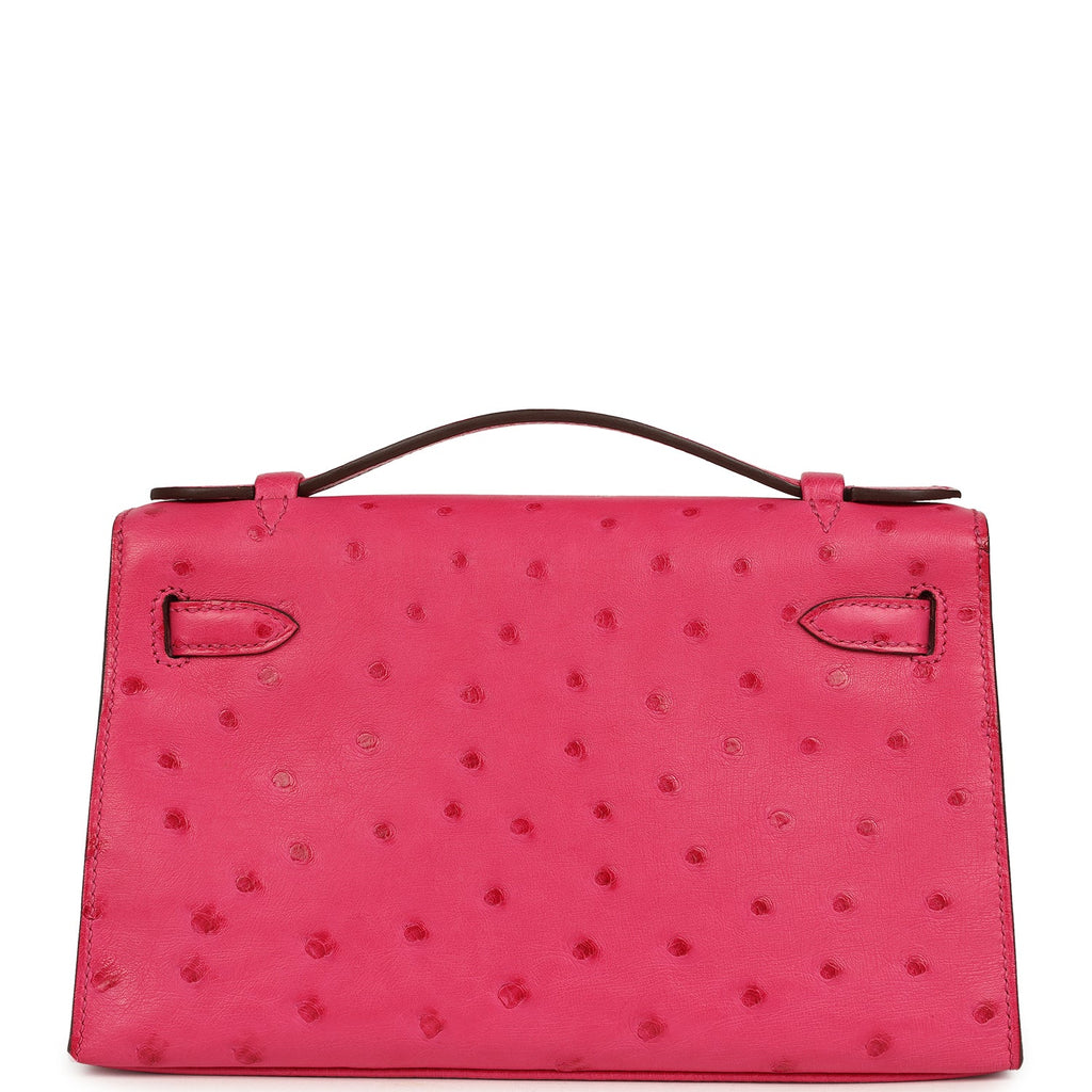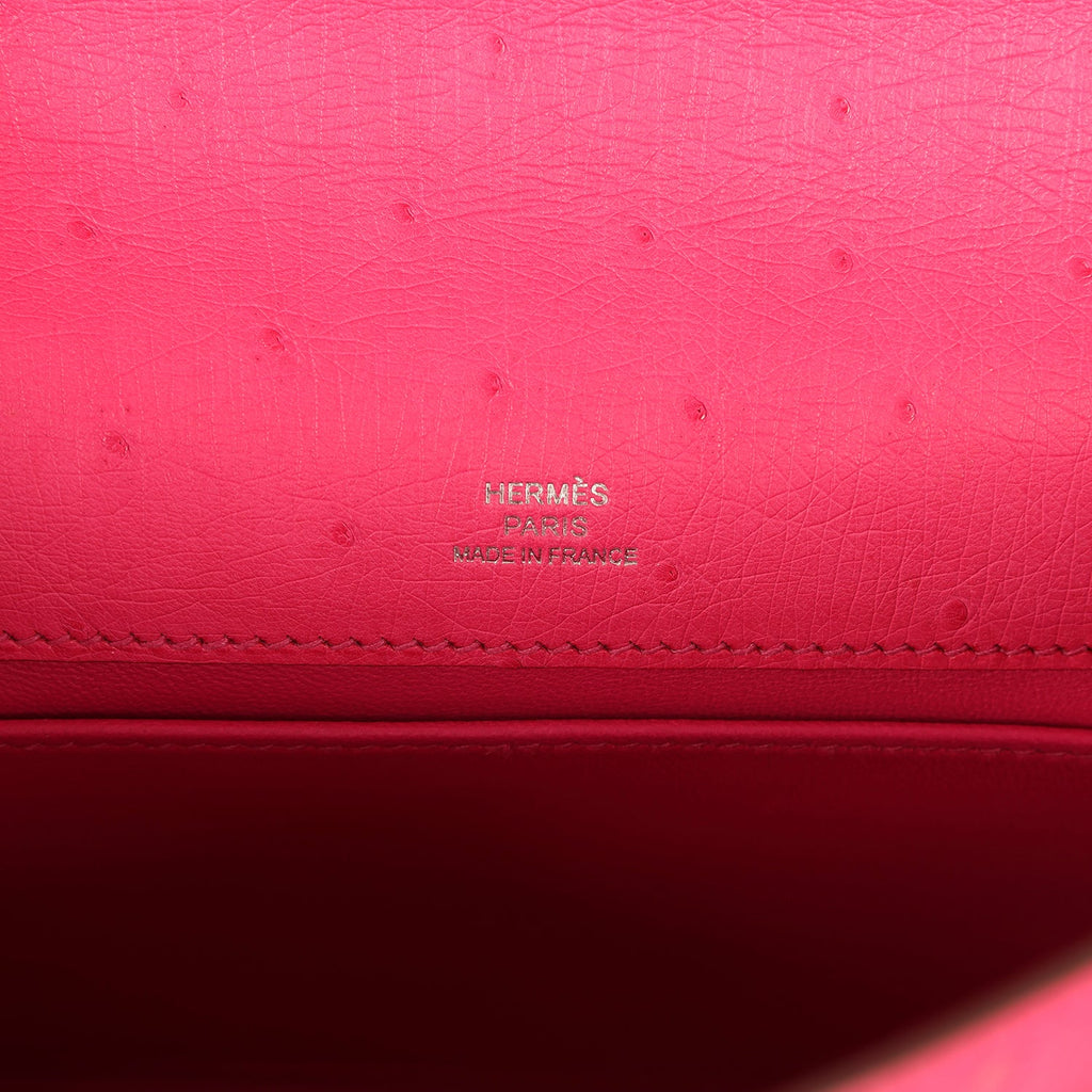 Hermes Kelly Pochette Rose Tyrien Ostrich Palladium Hardware