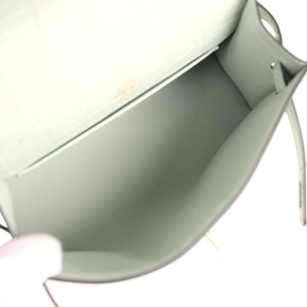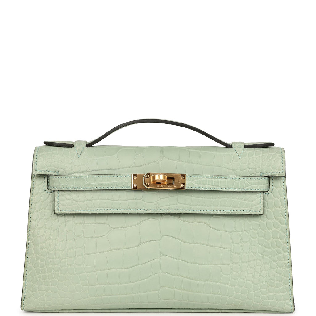 Hermes Kelly Pochette Vert D' Eau Matte Alligator Gold Hardware