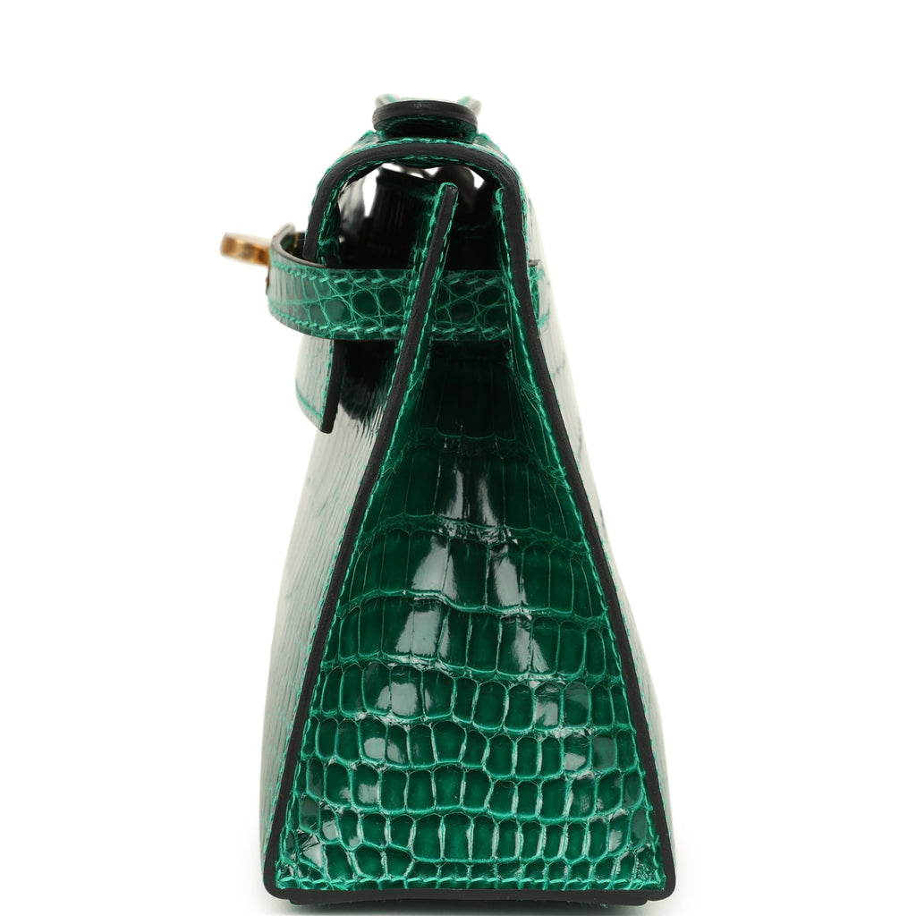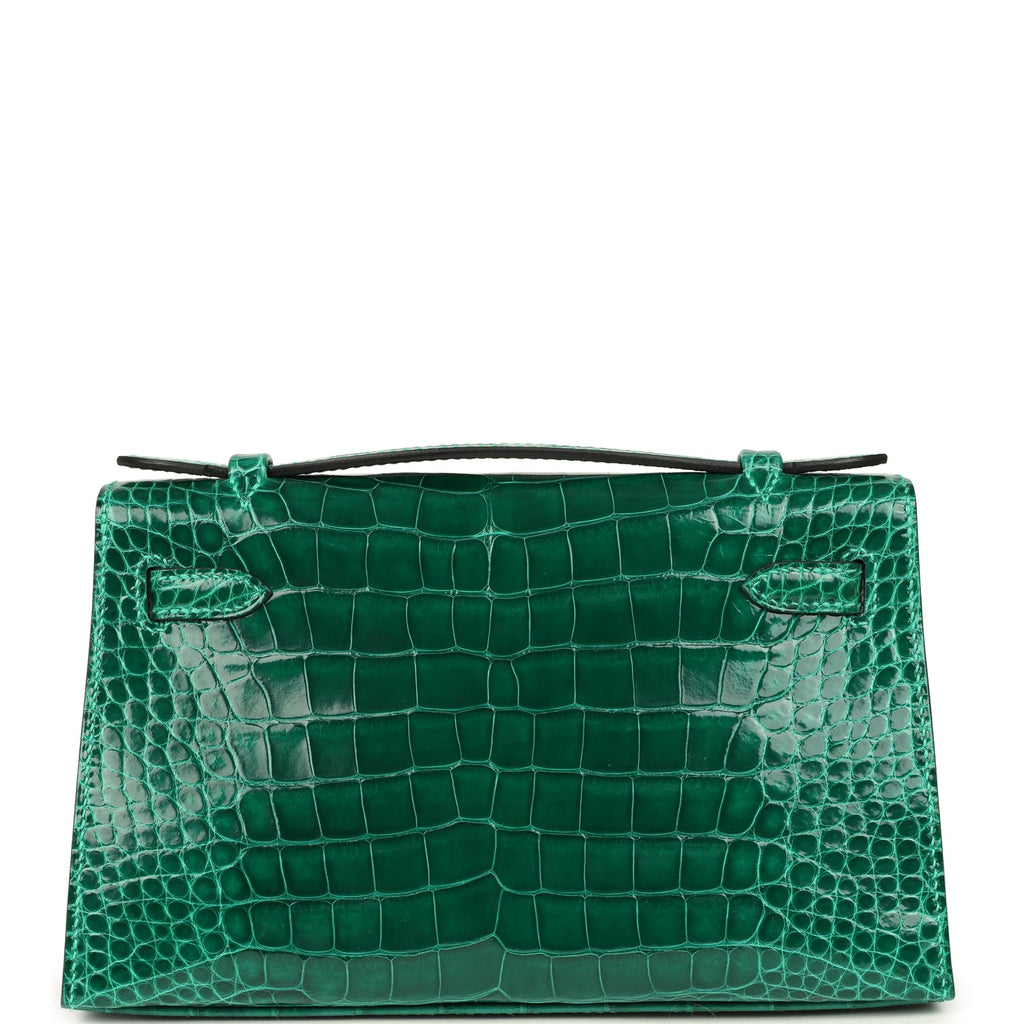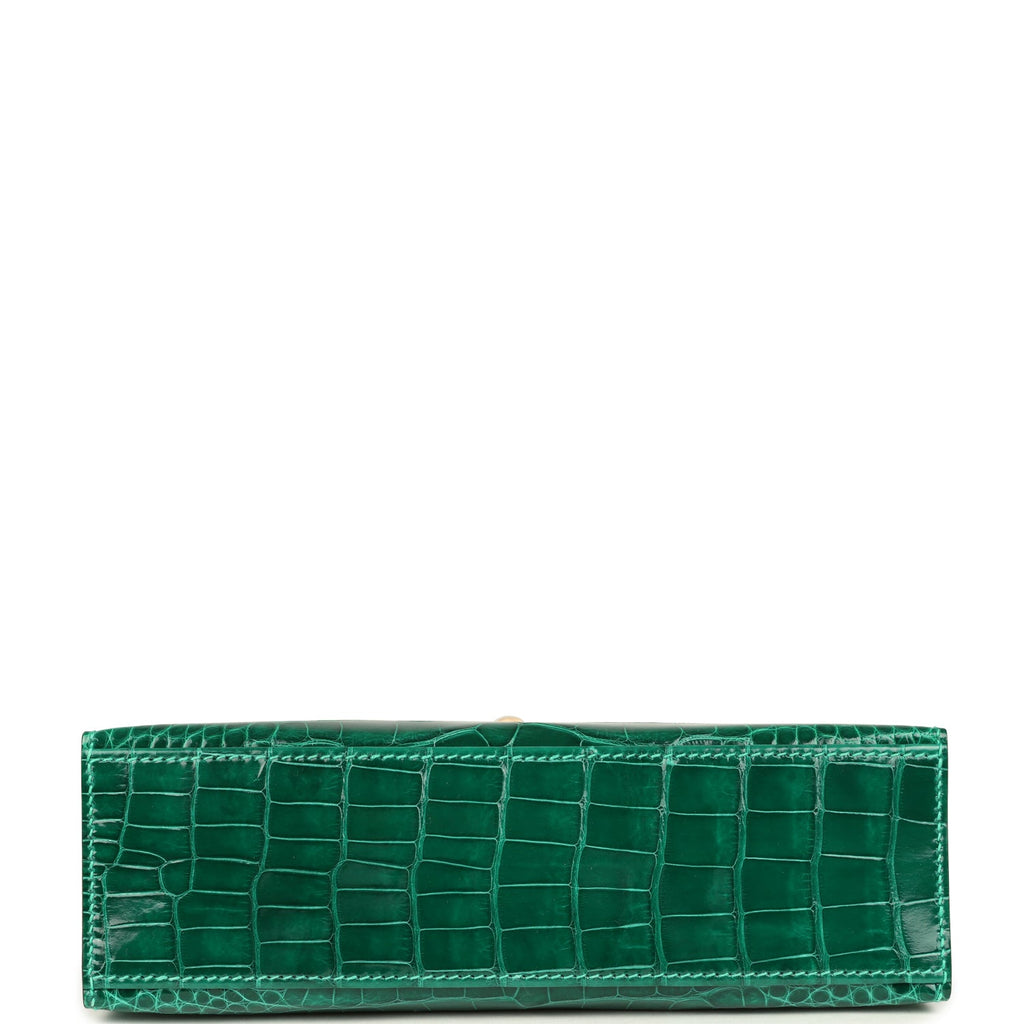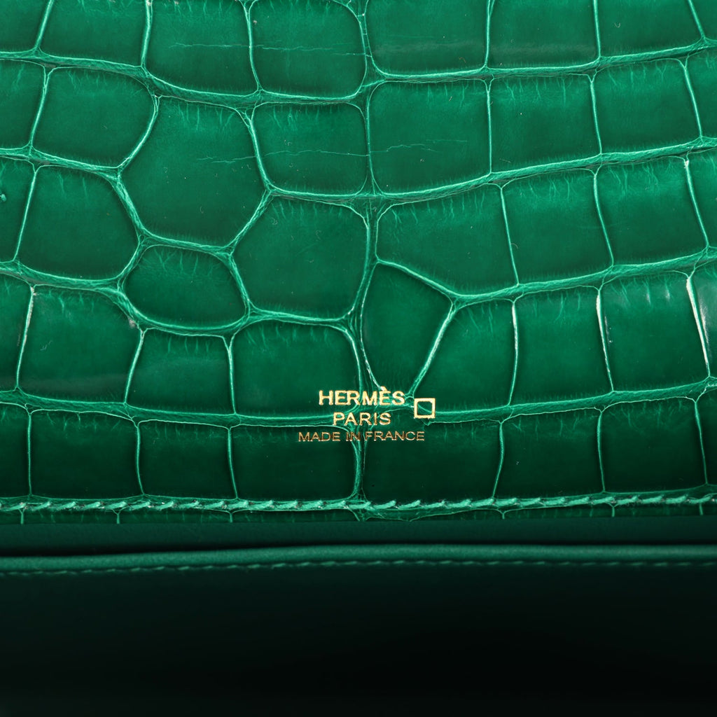 Hermes Kelly Pochette Vert Emeraude Shiny Alligator Gold Hardware