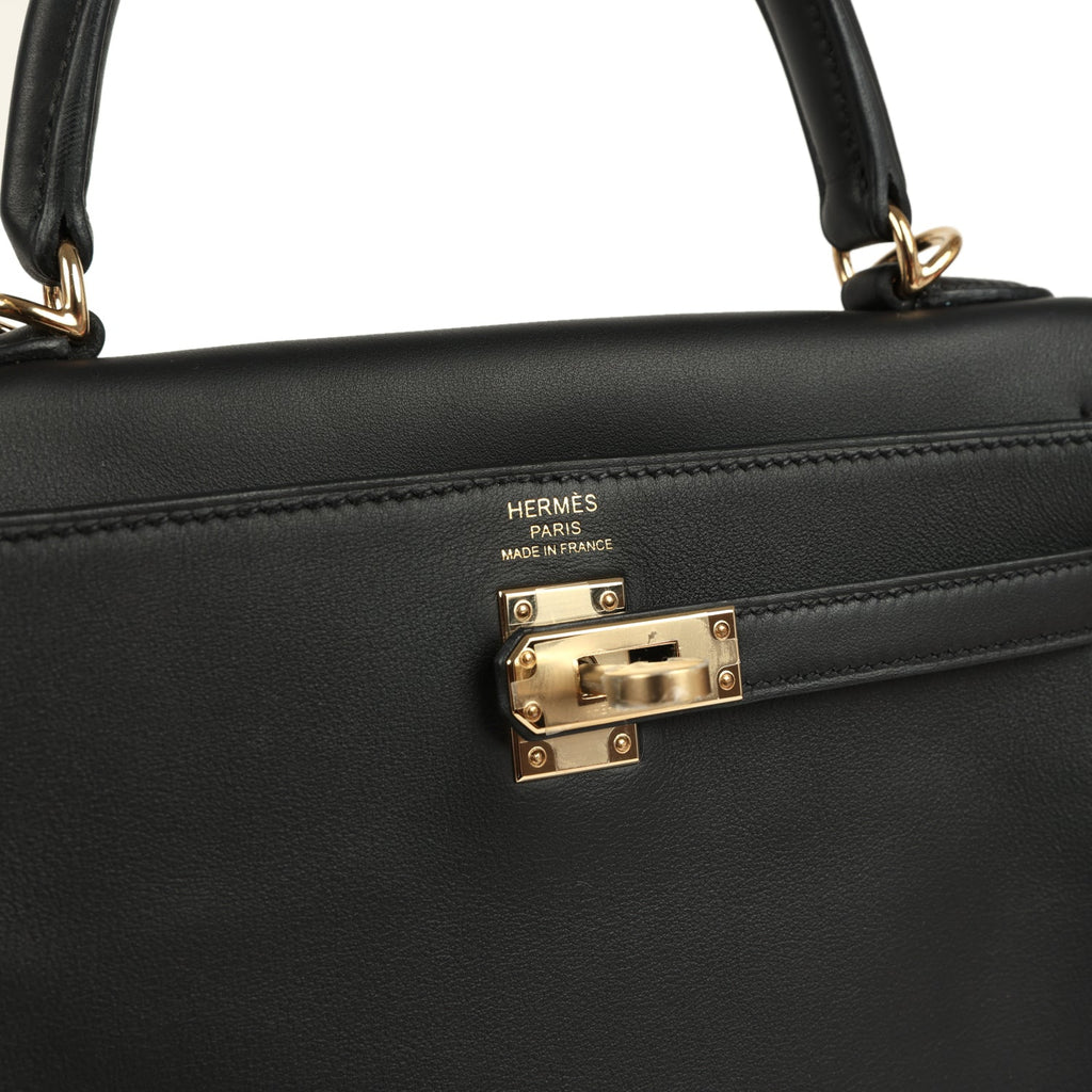 Hermes Kelly Retourne 25 Black Swift Permabrass Hardware