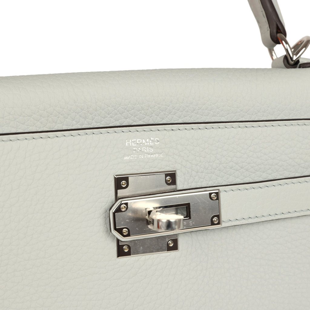 Hermes Kelly Retourne 32 Bleu Pale Clemence Palladium Hardware