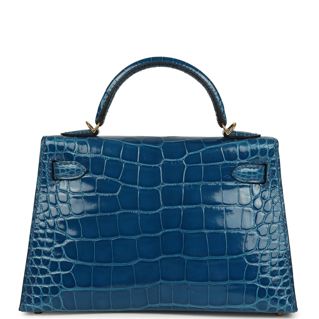 Hermes Kelly Sellier 20 Bleu Mykonos Shiny Alligator Gold Hardware