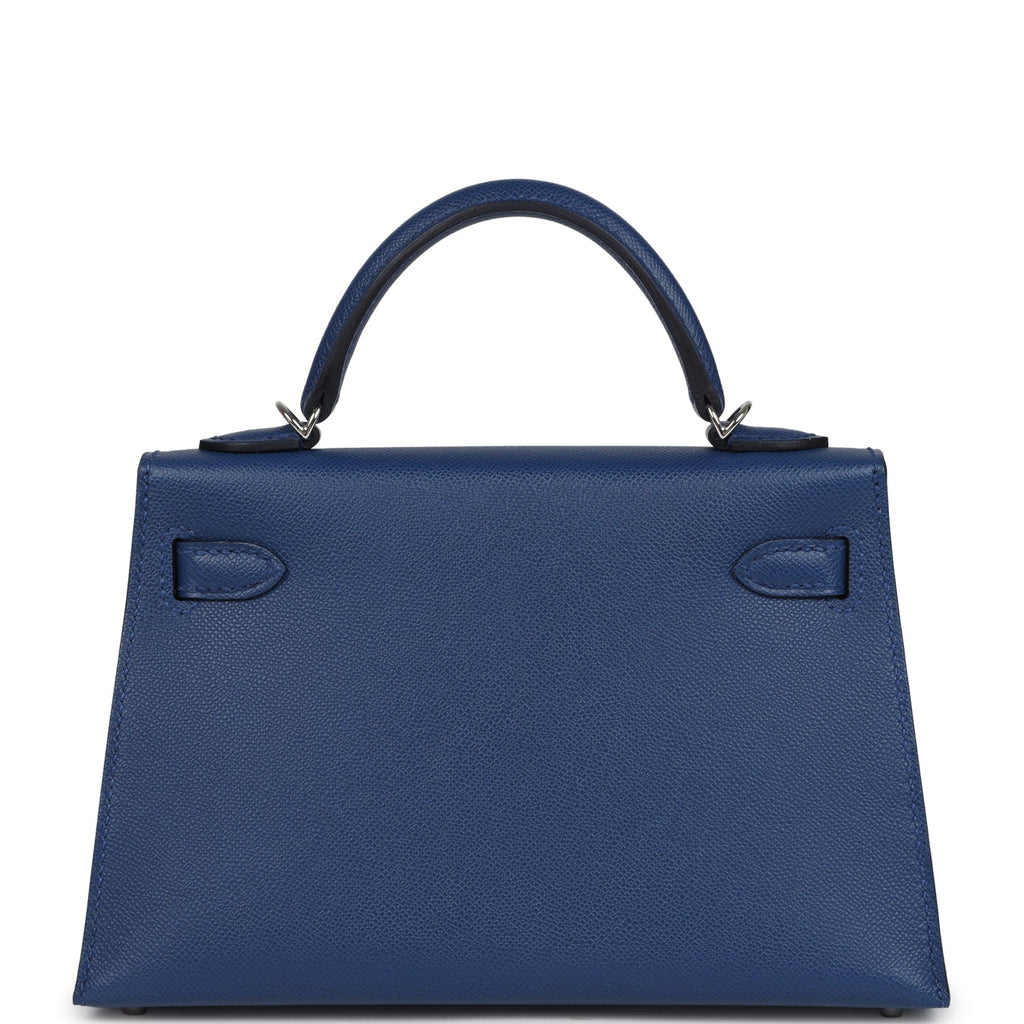 Hermes Kelly Sellier 20 Bleu Tie Madame Palladium Hardware