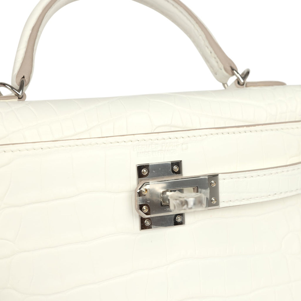 Hermes Kelly Sellier 20 Creme Chantilly Matte Alligator Palladium Hardware