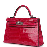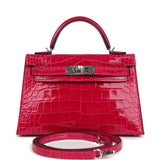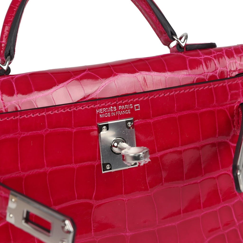Hermes Kelly Sellier 20 Framboise Shiny Alligator Palladium Hardware