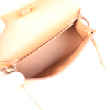 The interior is lined with Gold lambskin leather and has one open pocket on the back wall.