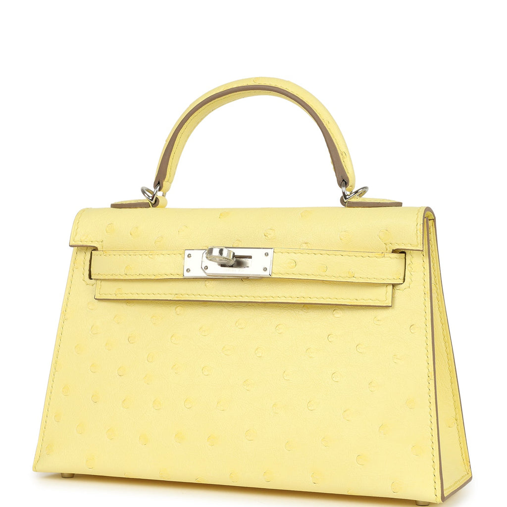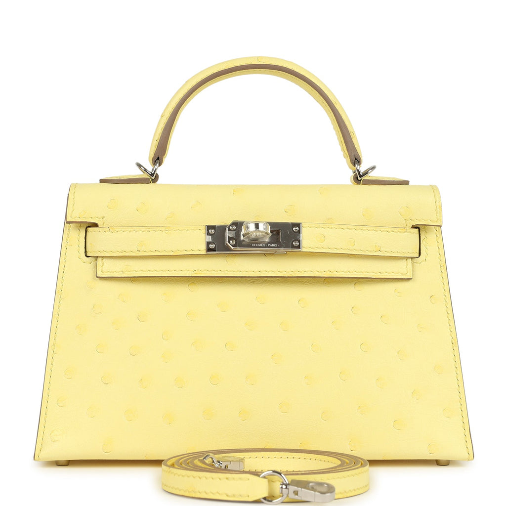 Hermes Kelly Sellier 20 Limoncello Ostrich Palladium Hardware