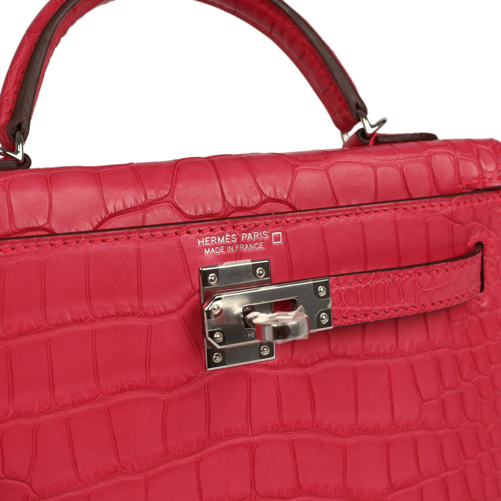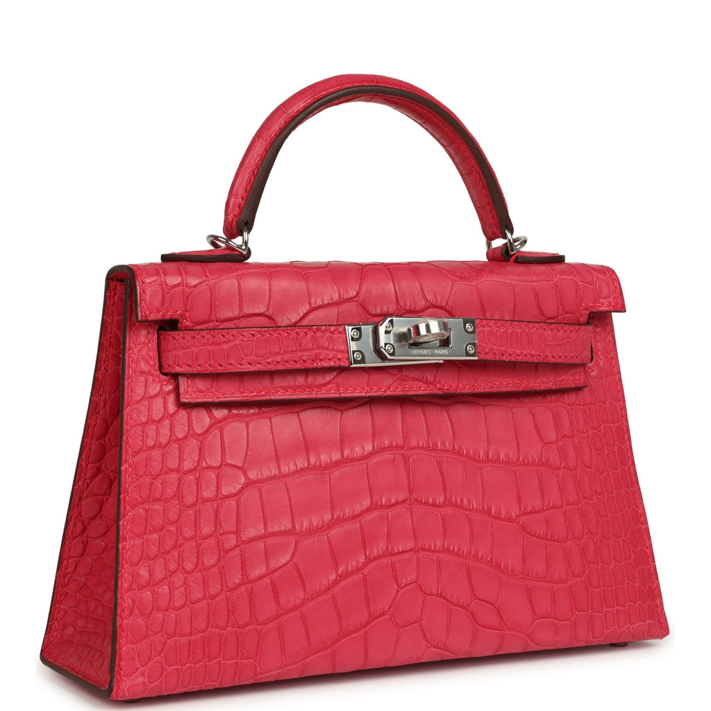 Hermes Kelly Sellier 20 Rose Extreme Matte Alligator Palladium Hardware