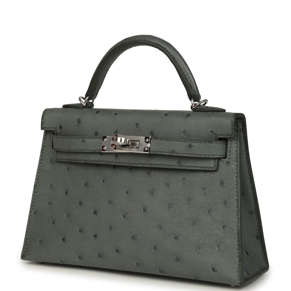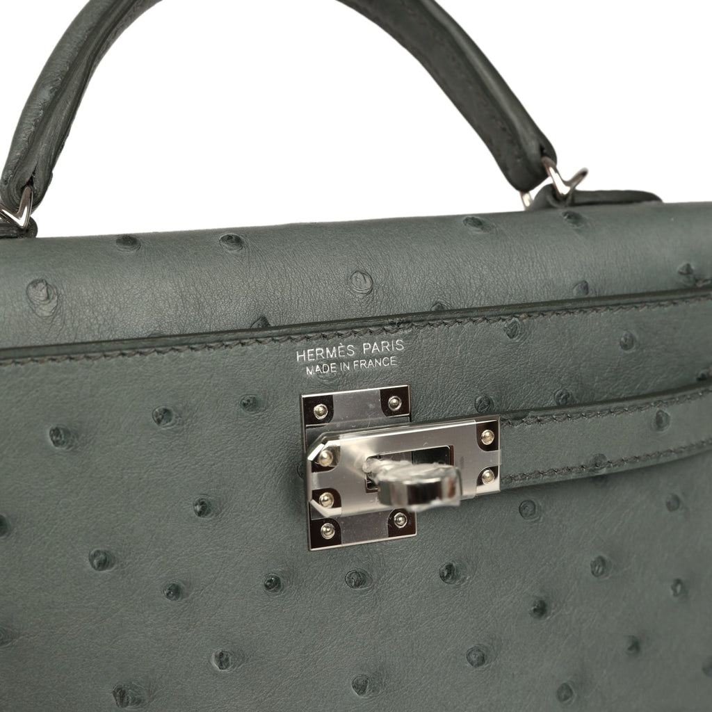 Hermes Kelly Sellier 20 Vert Amande Ostrich Palladium Hardware