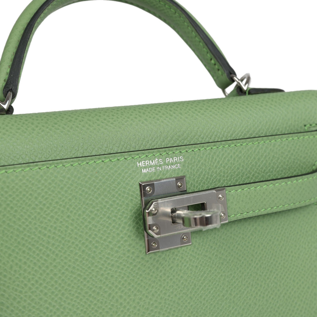 Hermes Kelly Sellier 20 Vert Criquet Epsom Palladium Hardware