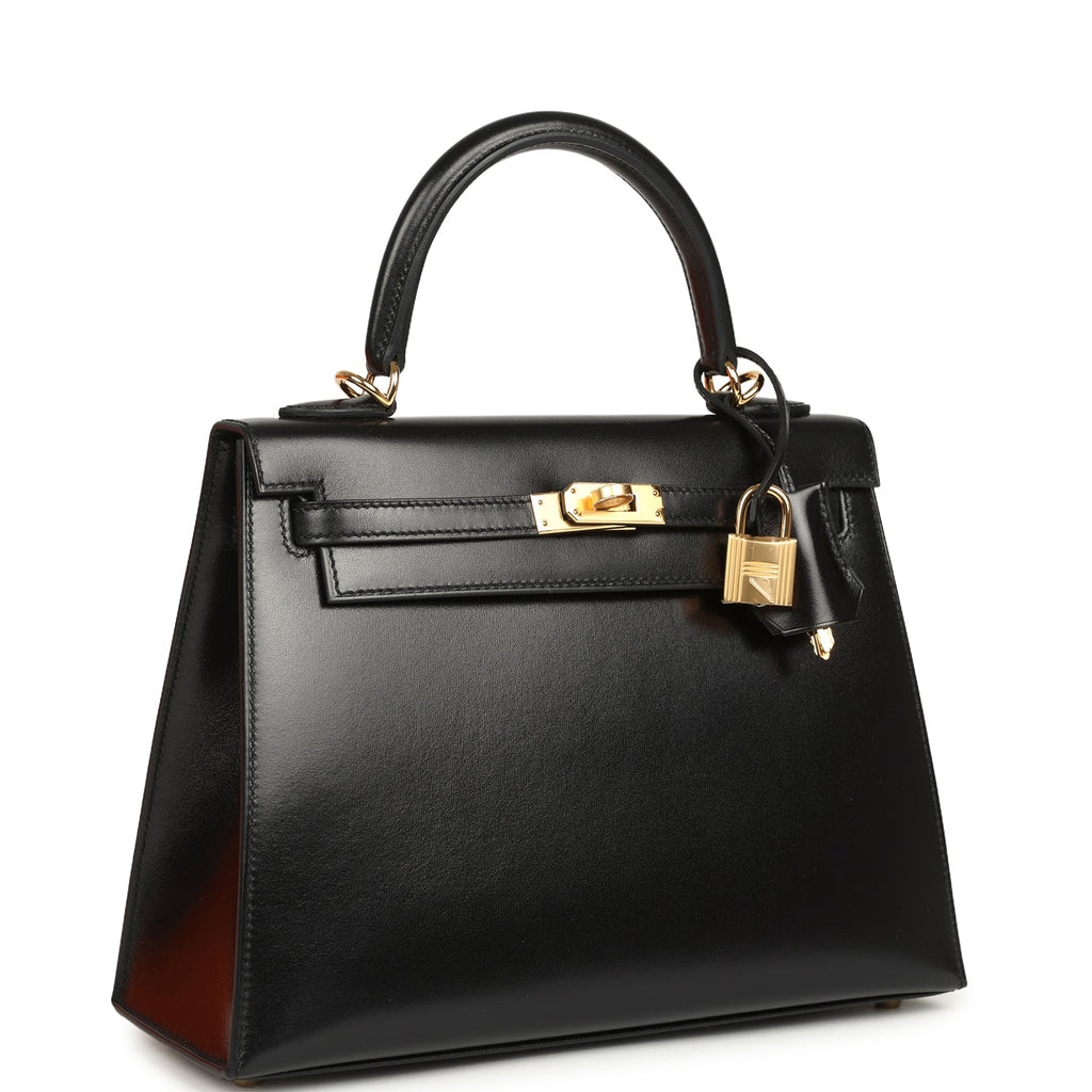 Hermes Kelly Sellier 25 Black Box Gold Hardware
