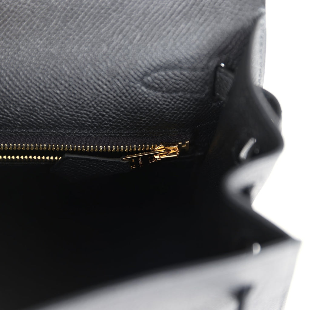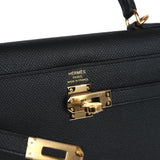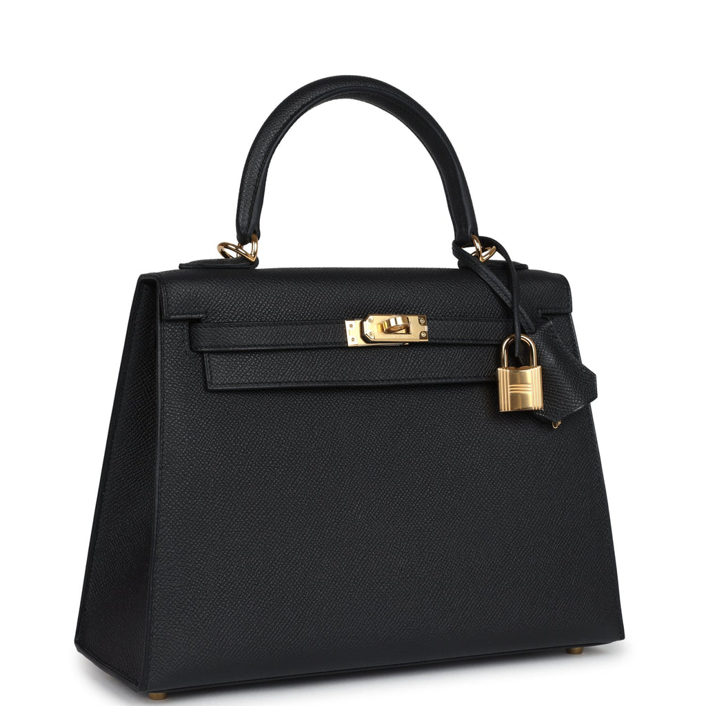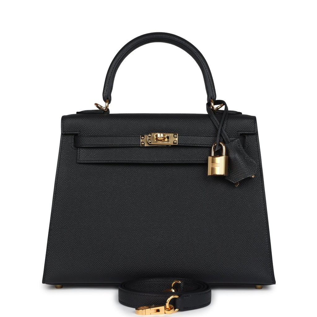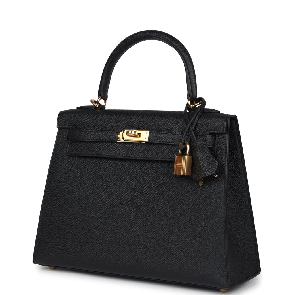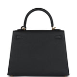 Hermes Kelly Sellier 25 Black Epsom Gold Hardware