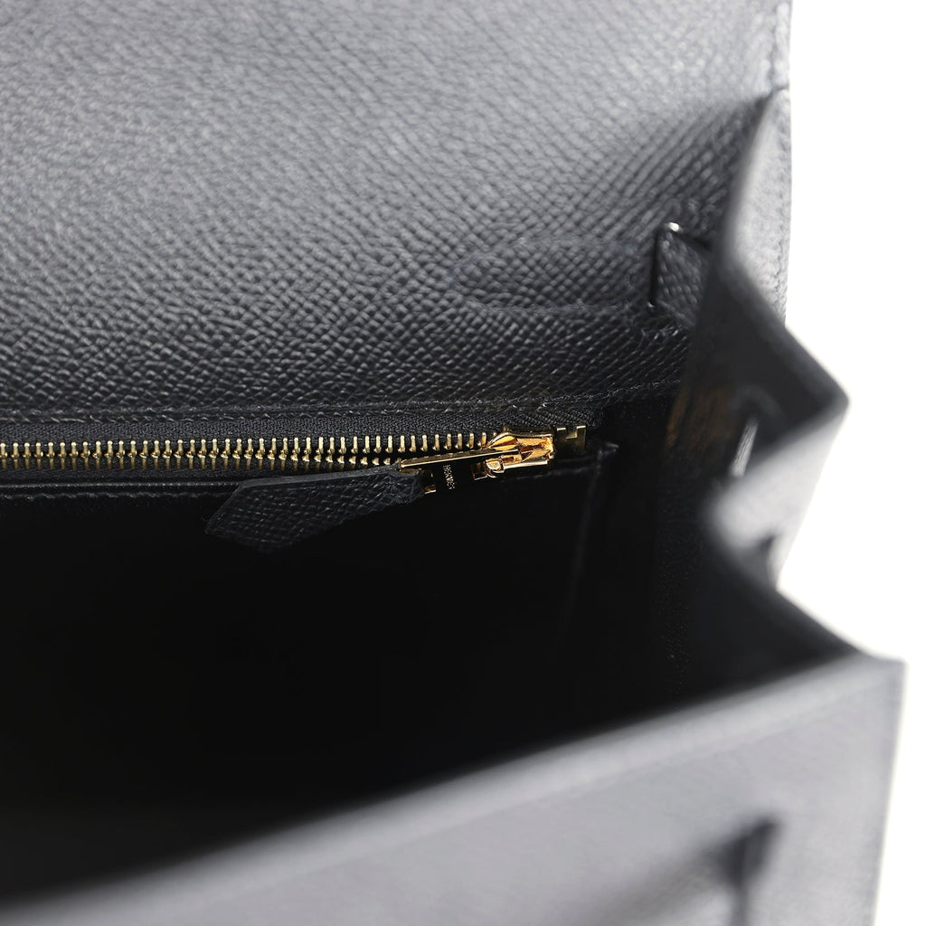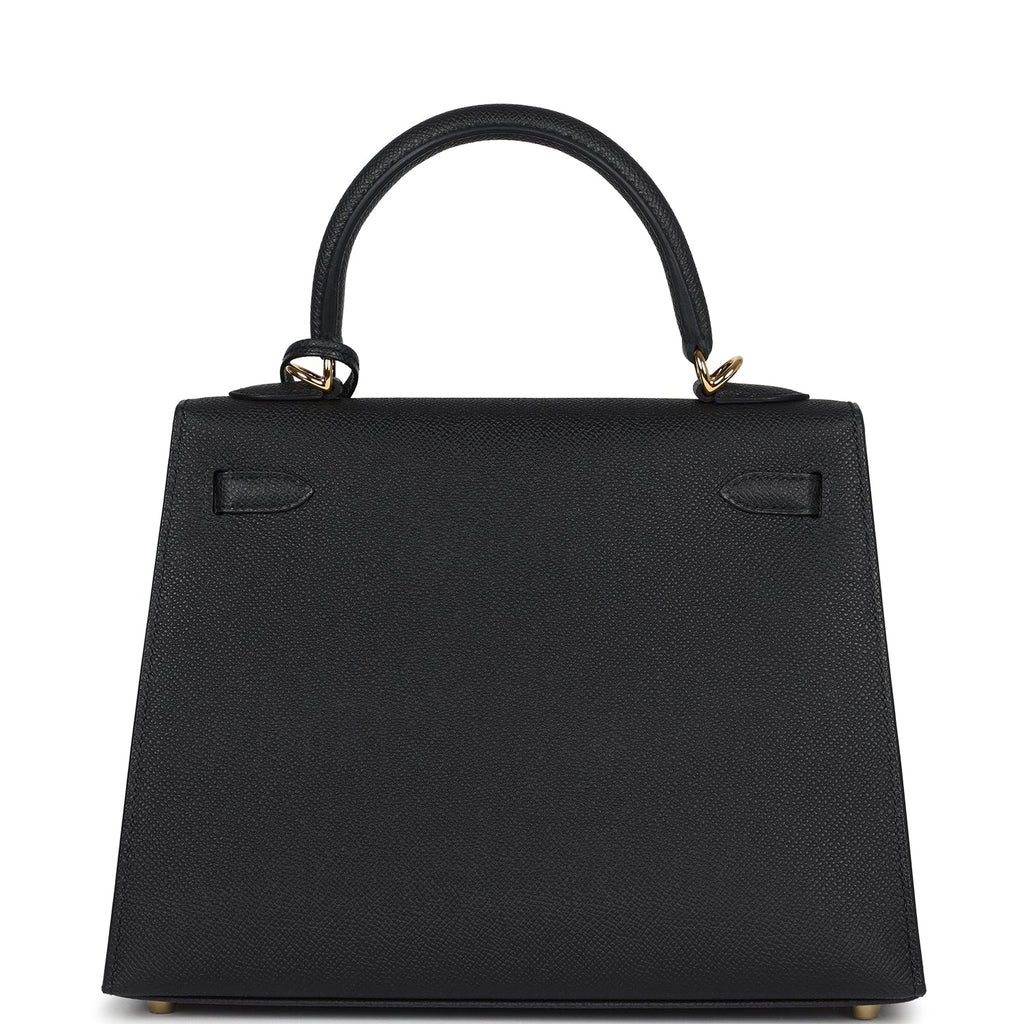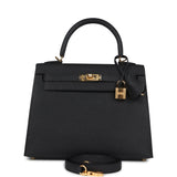 Hermes Kelly Sellier 25 Black Epsom Gold Hardware