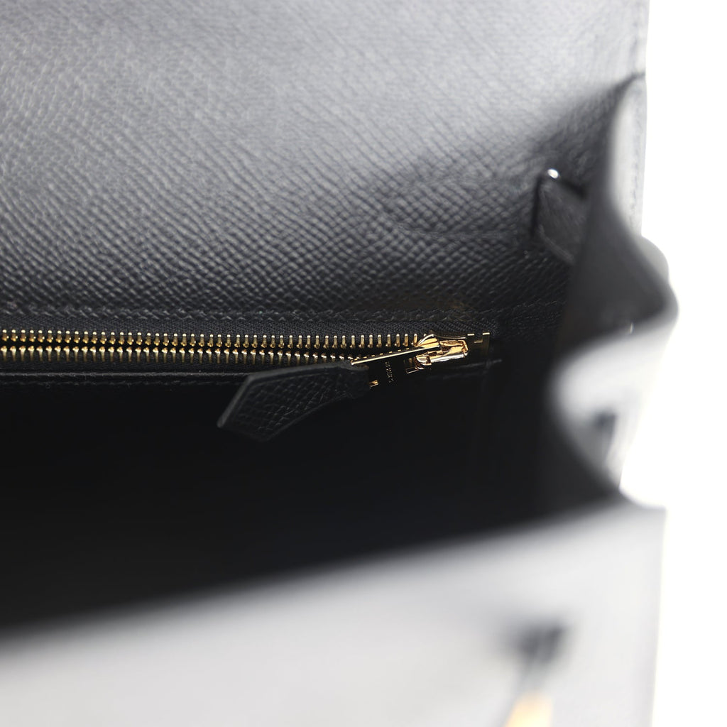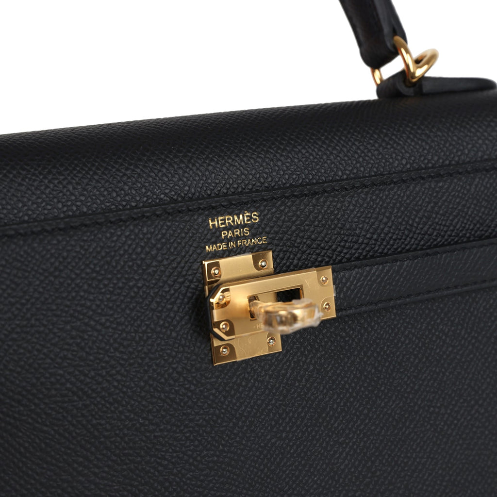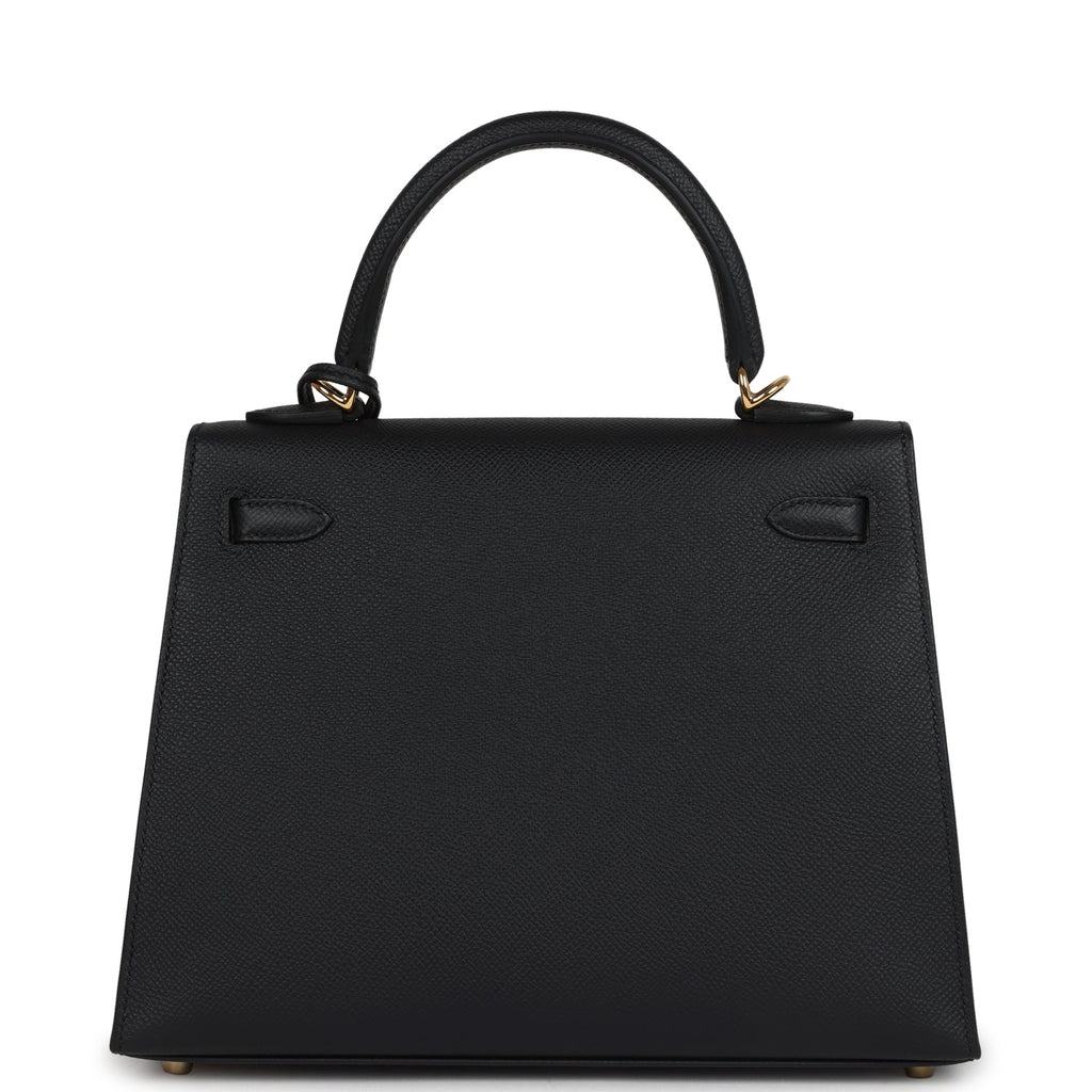 Hermes Kelly Sellier 25 Black Epsom Gold Hardware