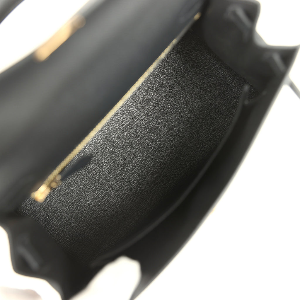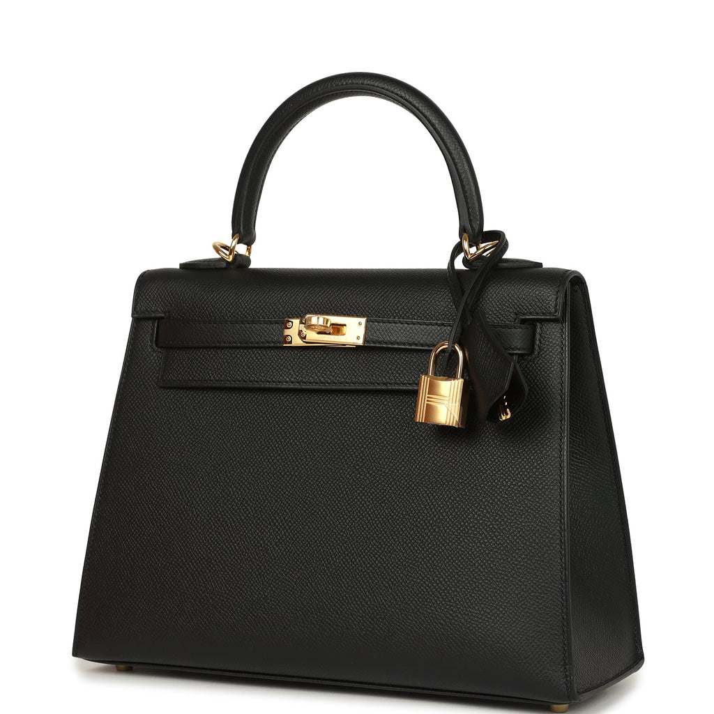 Hermes Kelly Sellier 25 Black Epsom Gold Hardware