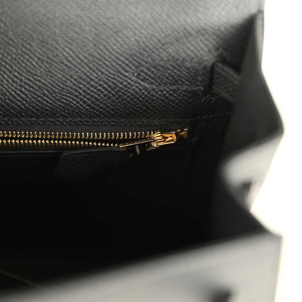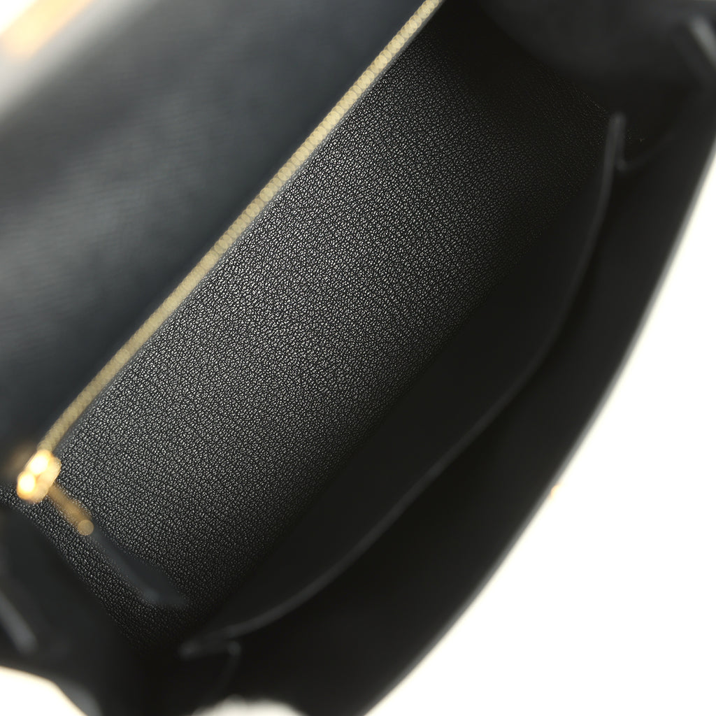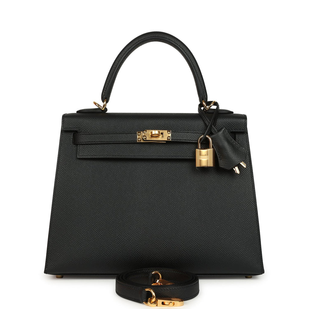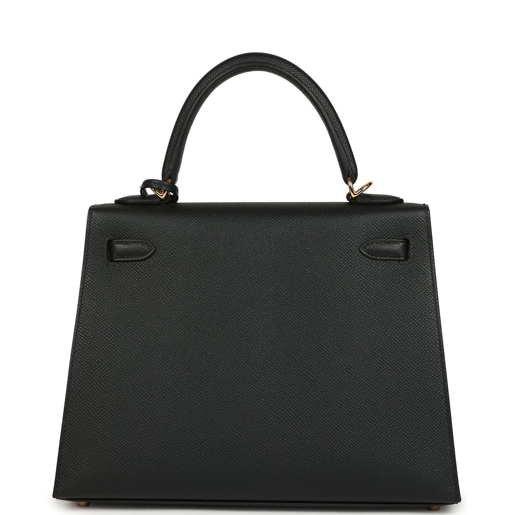 Hermes Kelly Sellier 25 Black Epsom Gold Hardware