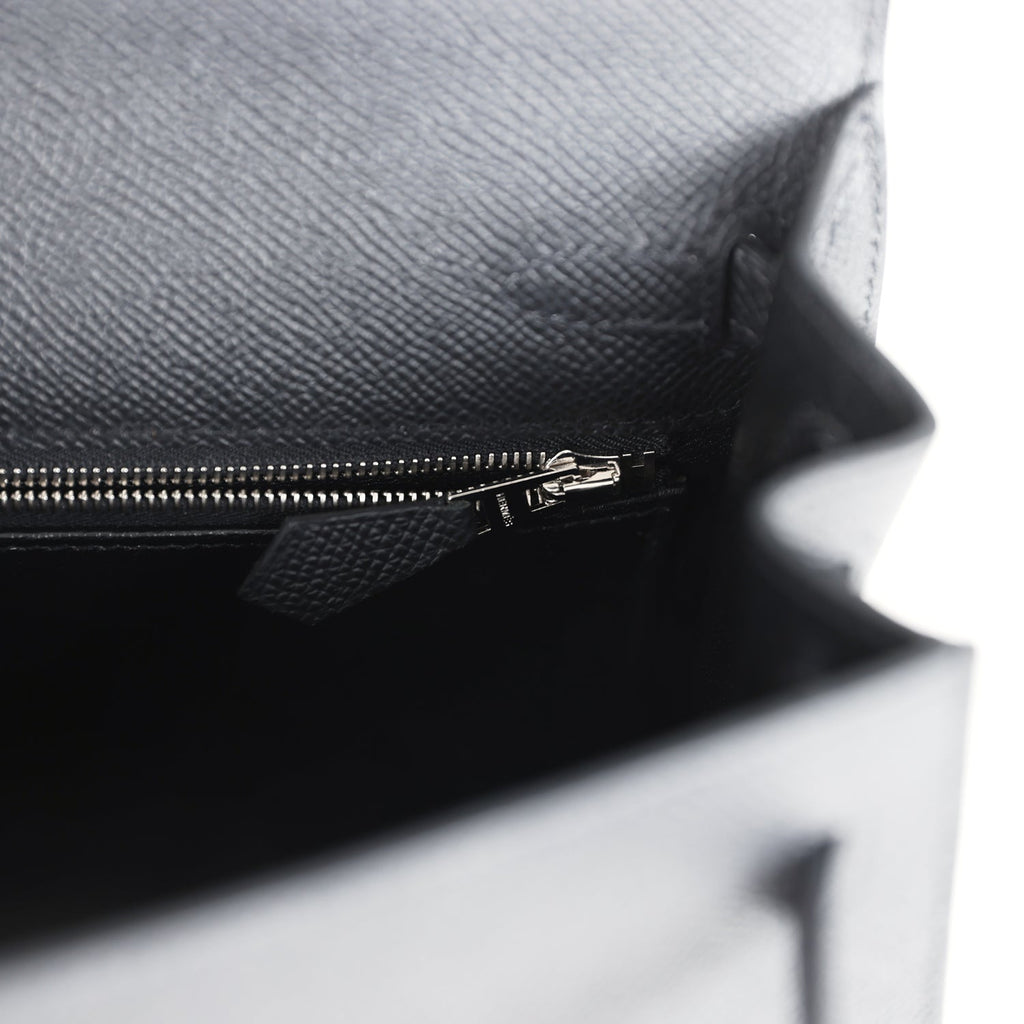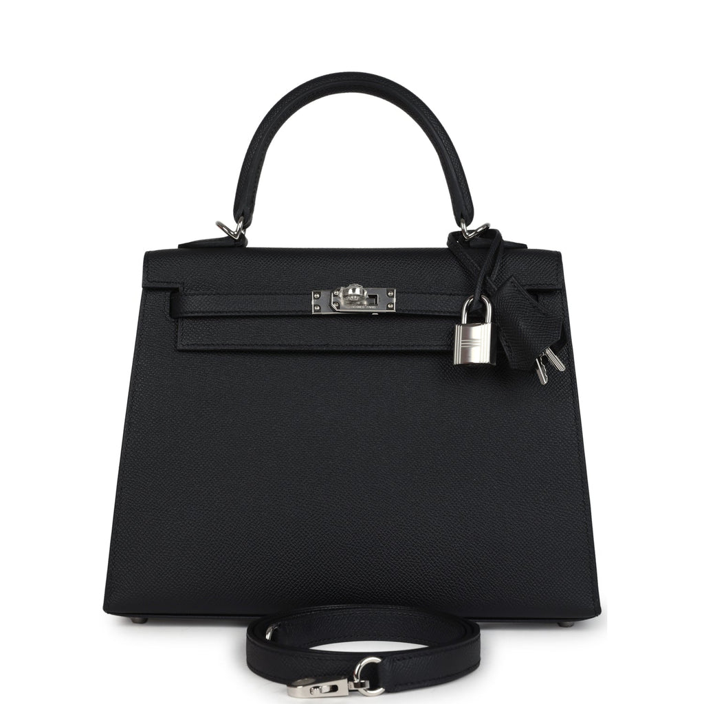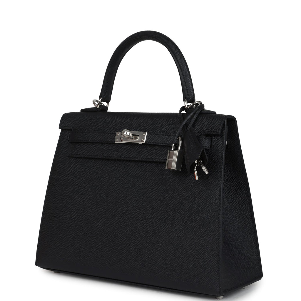 Hermes Kelly Sellier 25 Black Epsom Palladium Hardware