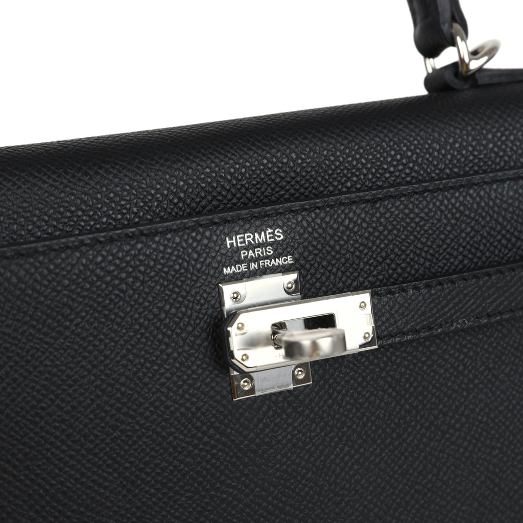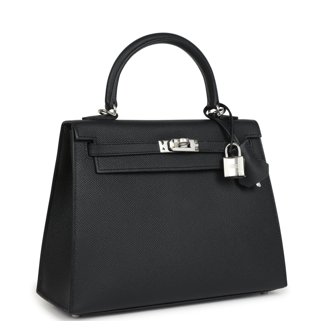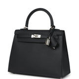 Hermes Kelly Sellier 25 Black Epsom Palladium Hardware