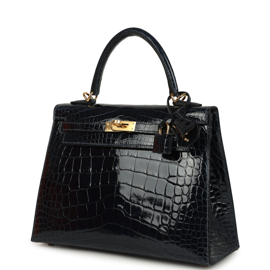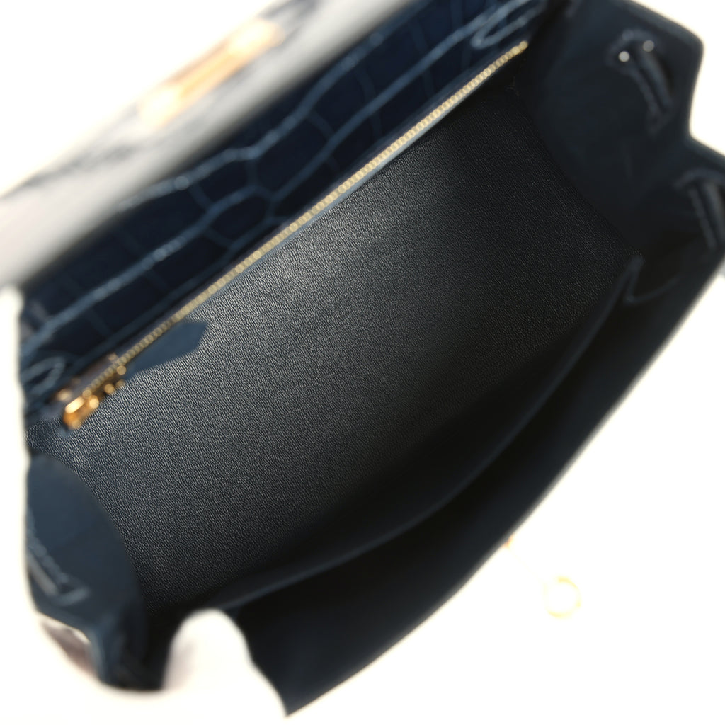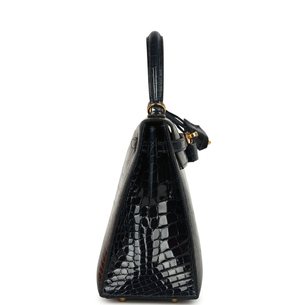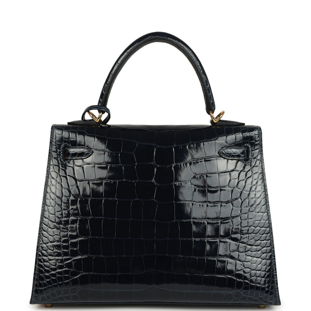 Hermes Kelly Sellier 25 Bleu Baltique Shiny Alligator Gold Hardware