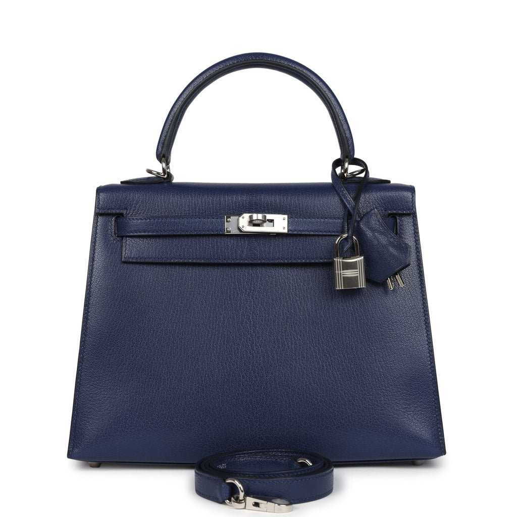 Hermes Kelly Sellier 25 Bleu Saphir Chevre Chamkila Palladium Hardware