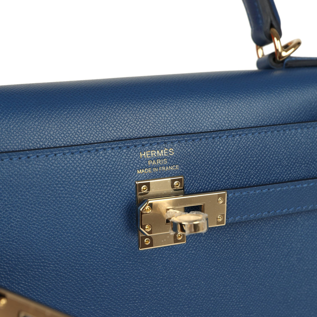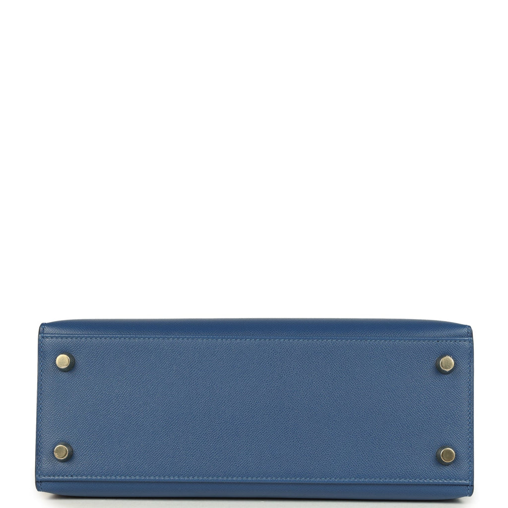 Hermes Kelly Sellier 25 Bleu Tie Madame Permabrass Hardware