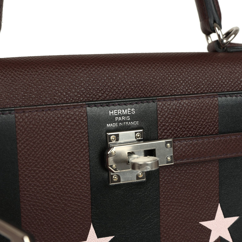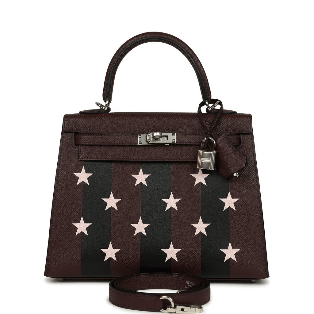 Hermes Kelly Sellier 25 Casaque Etoilee Rouge Sellier Epsom, Black Tadelakt, Rose Darling Chevre Mysore Palladium Hardware