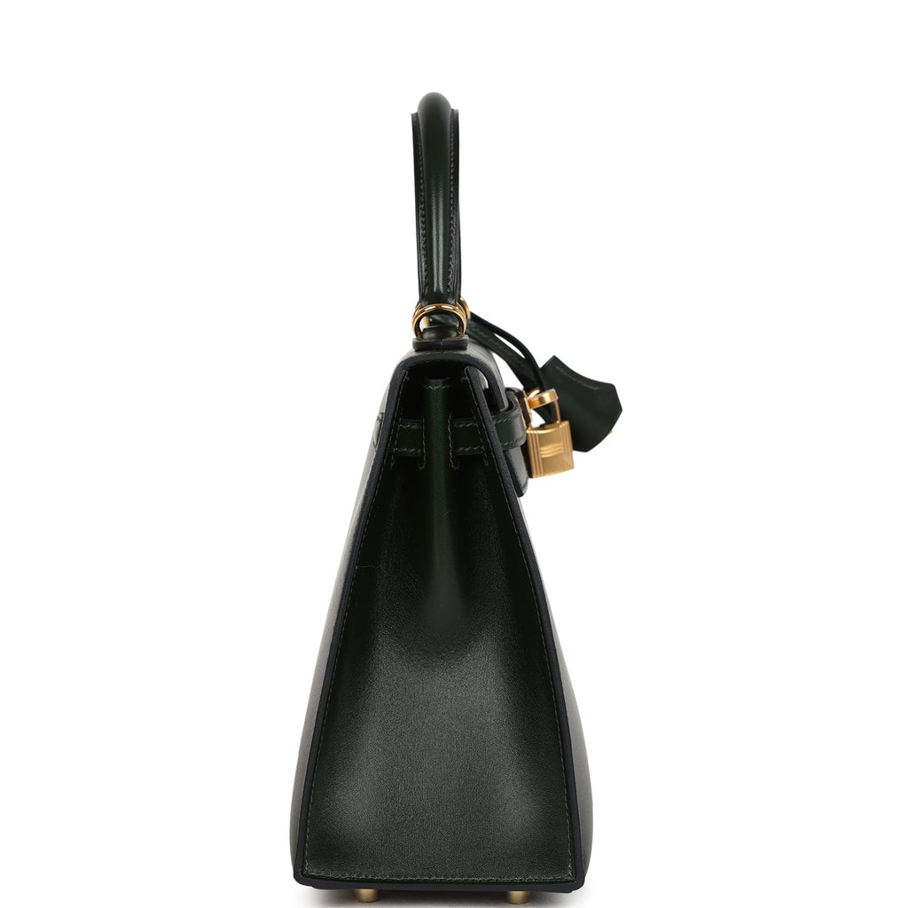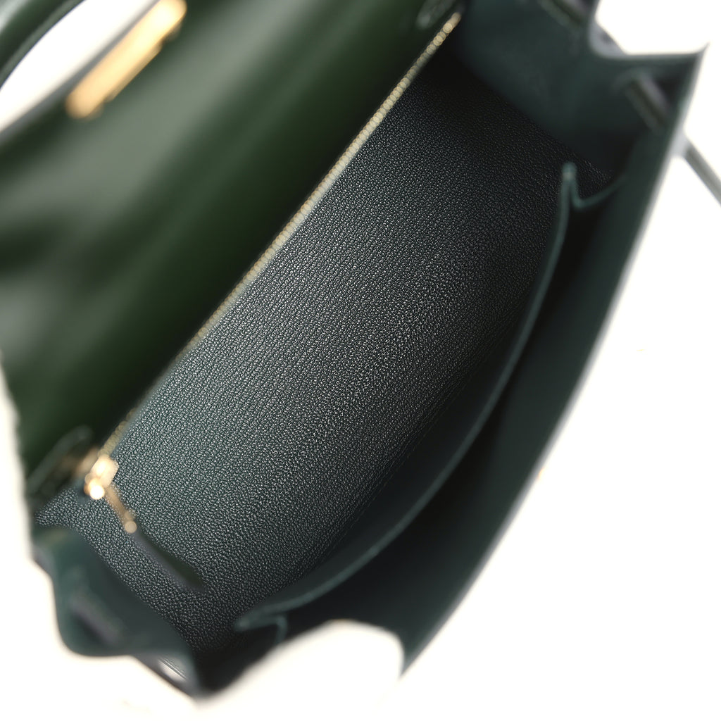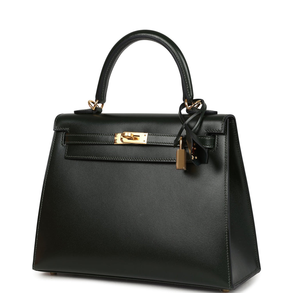 Hermes Kelly Sellier 25 Vert Fonce Box Gold Hardware