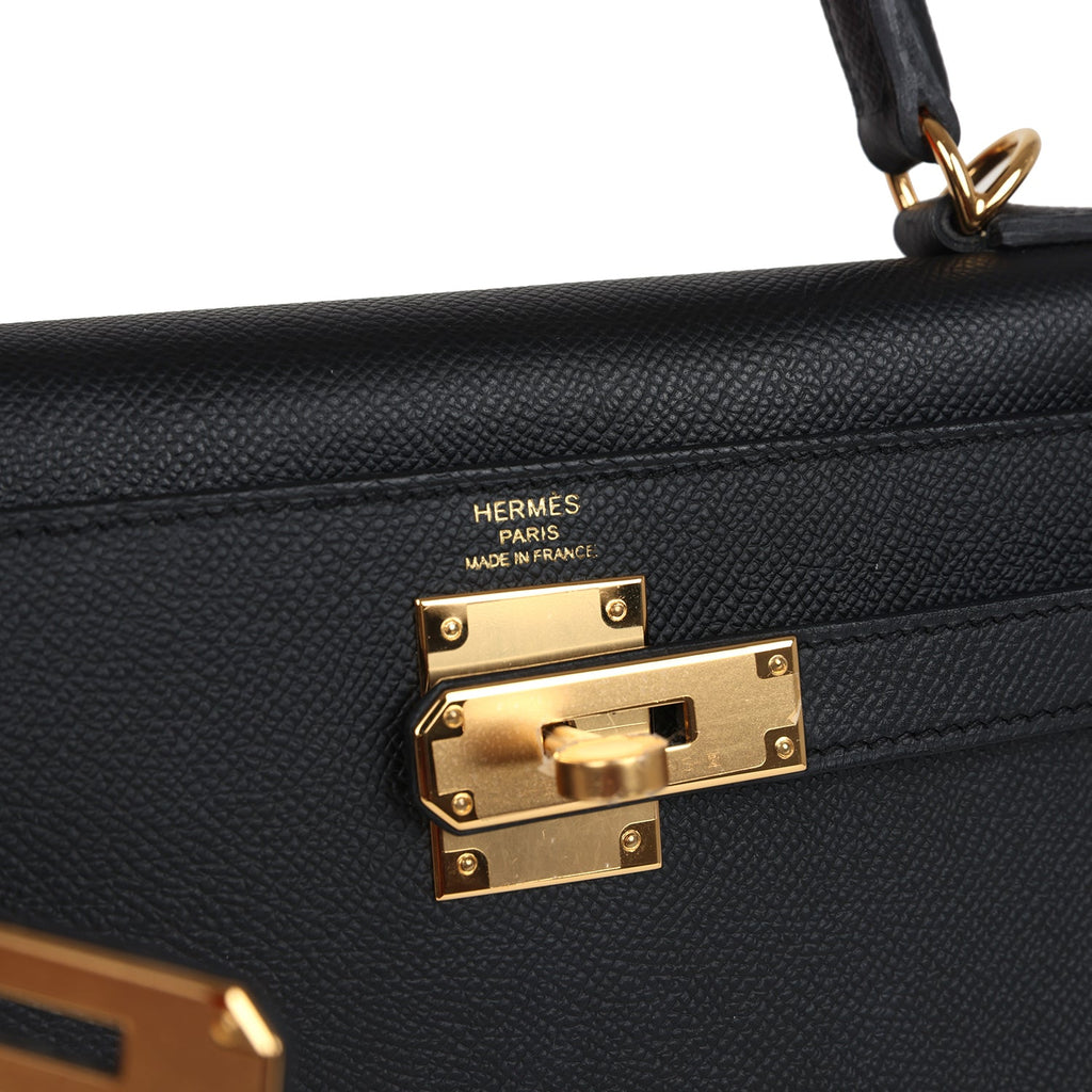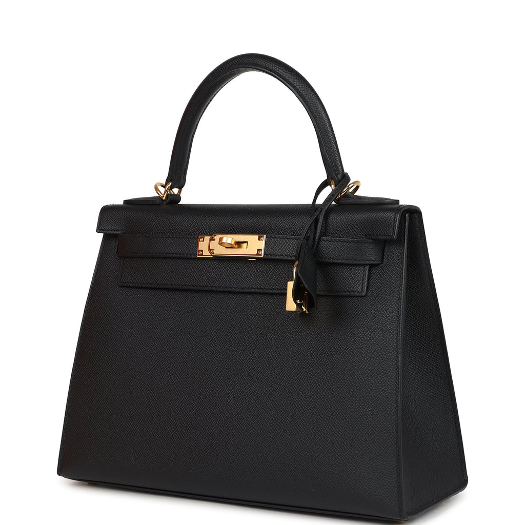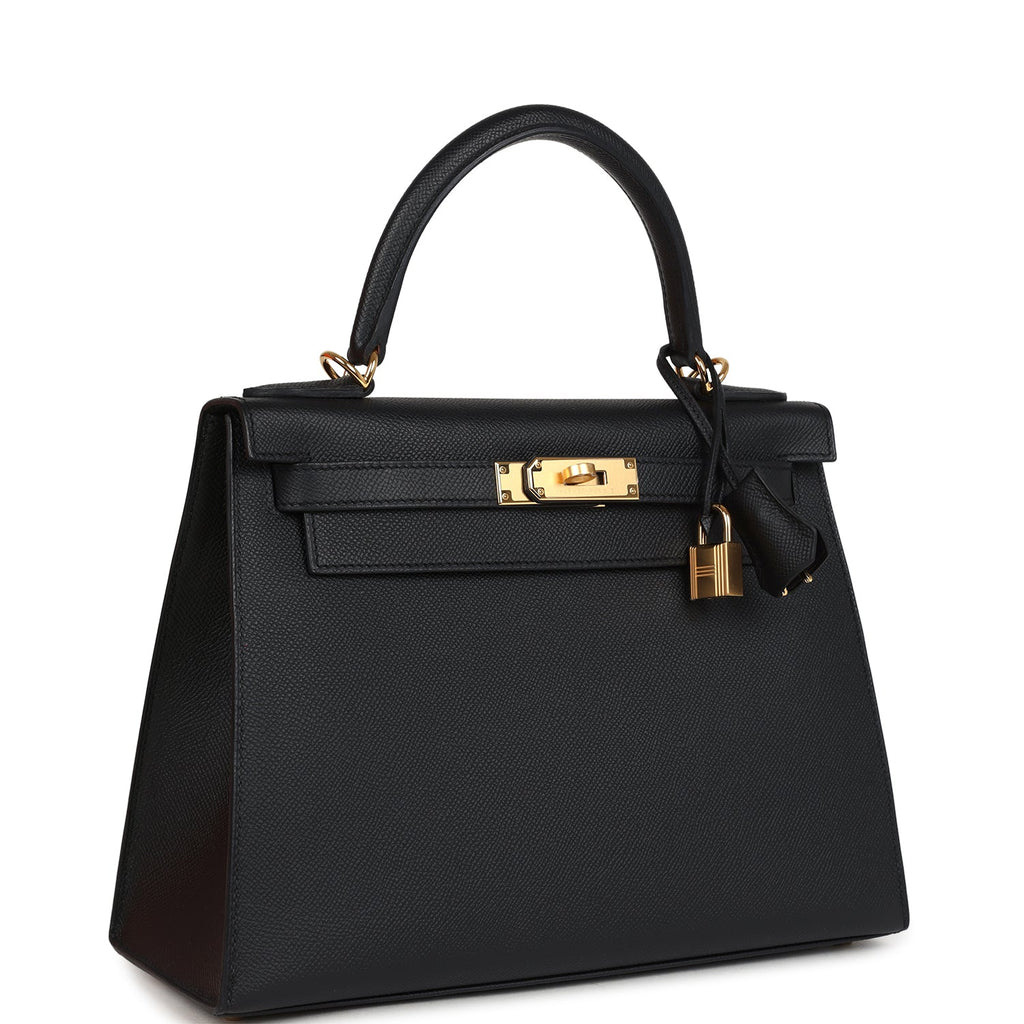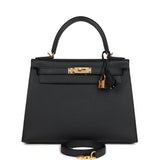 Hermes Kelly Sellier 28 Black Epsom Gold Hardware
