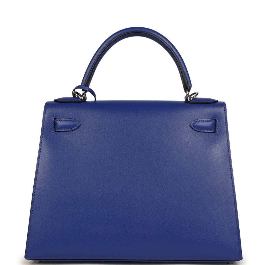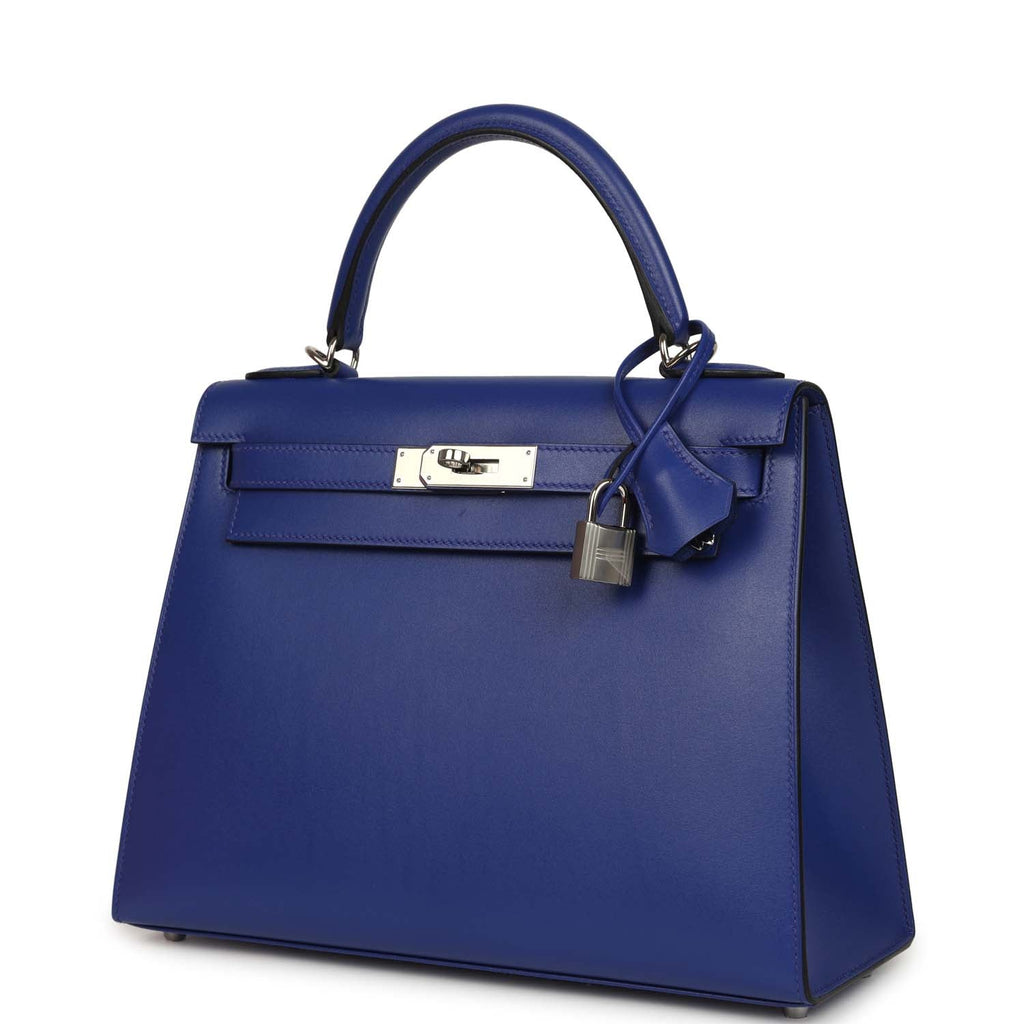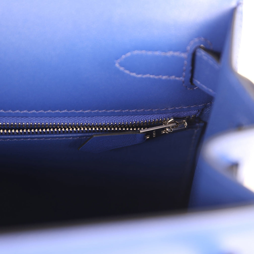 Pre-owned Hermes Kelly Sellier 28 Bleu Electric Tadelakt Palladium Hardware