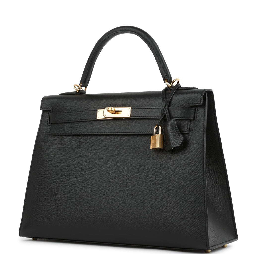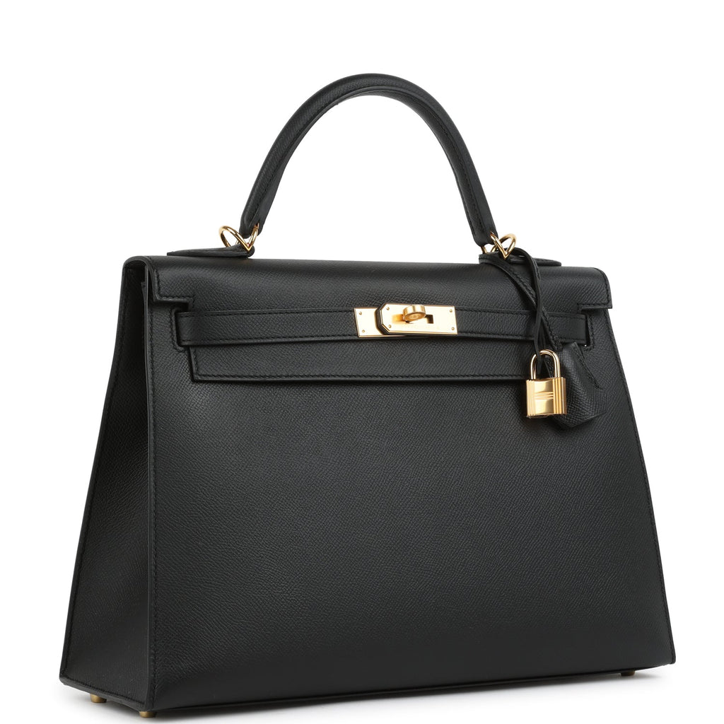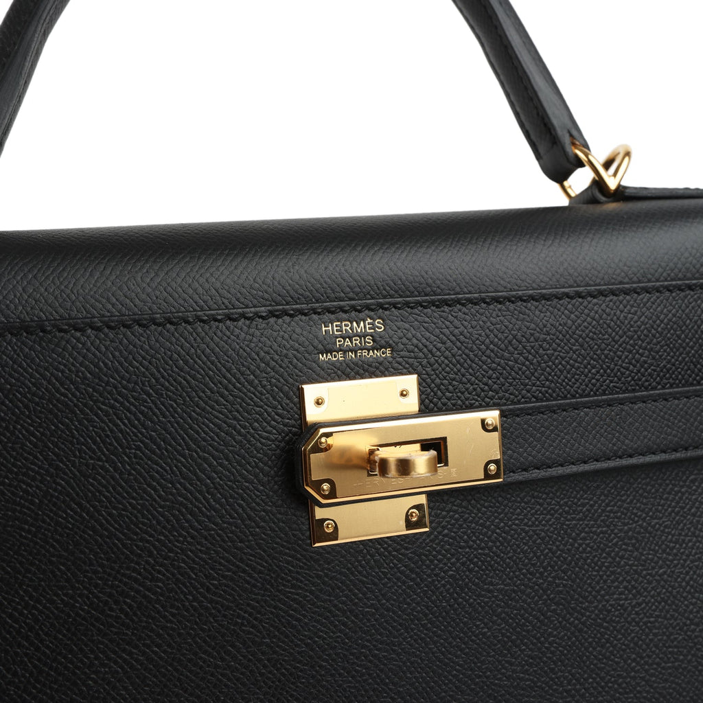 Hermes Kelly Sellier 32 Black Epsom Gold Hardware