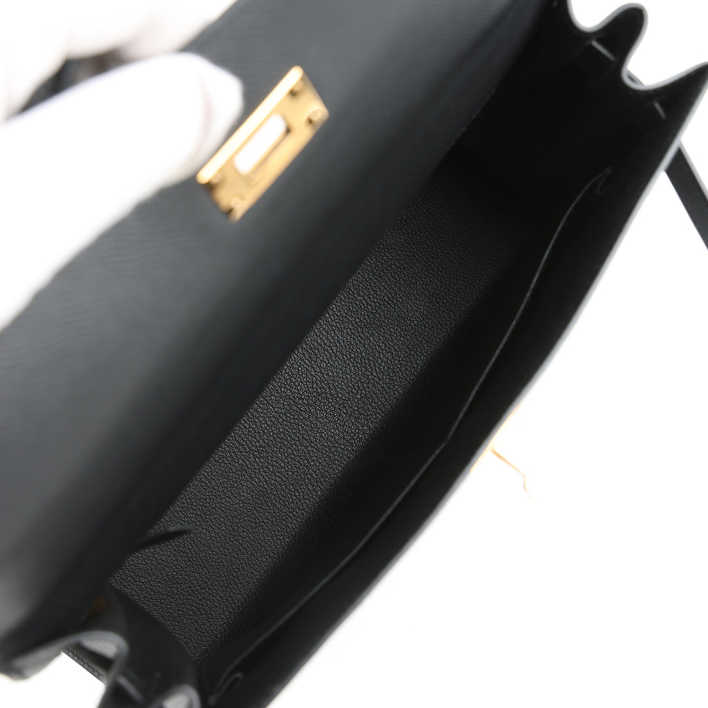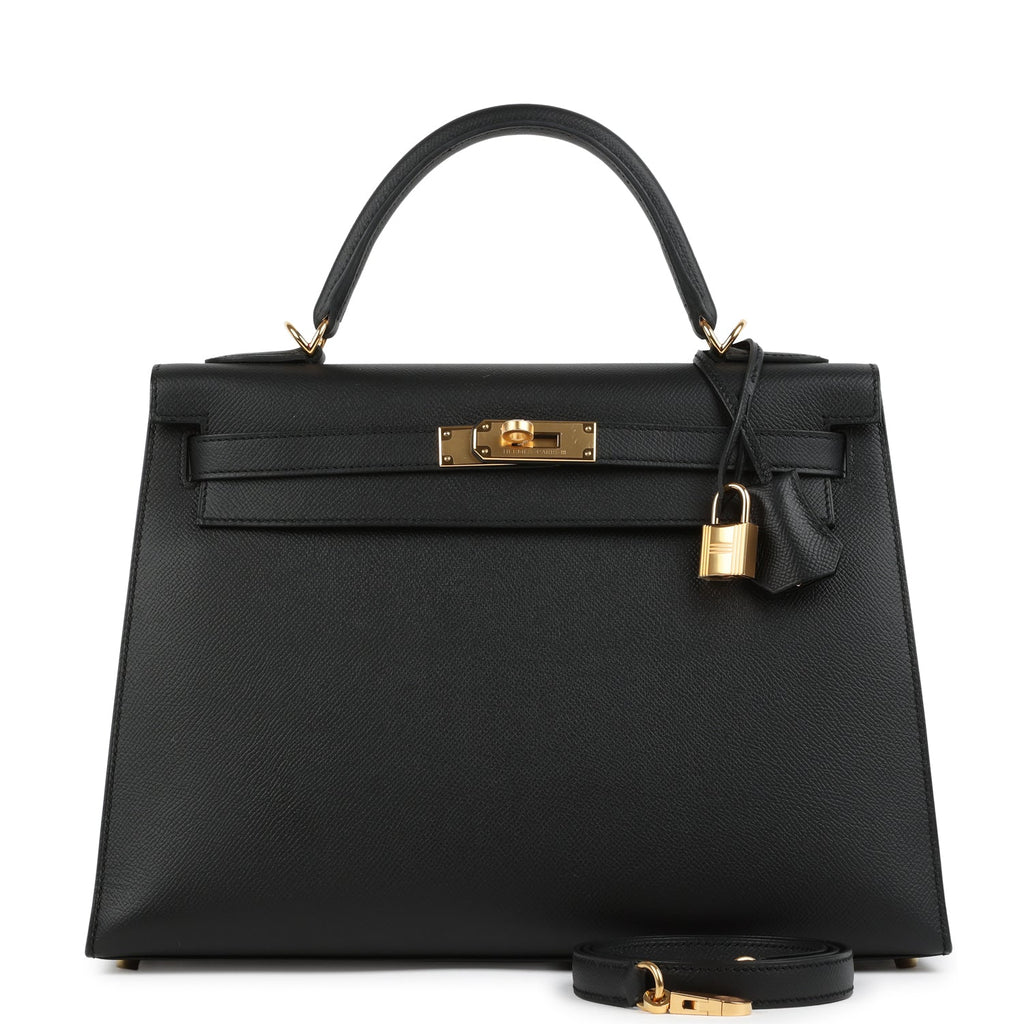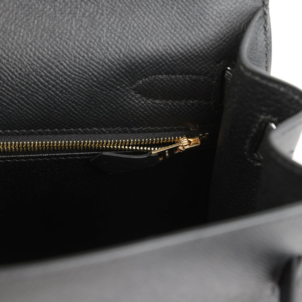 Hermes Kelly Sellier 32 Black Epsom Gold Hardware