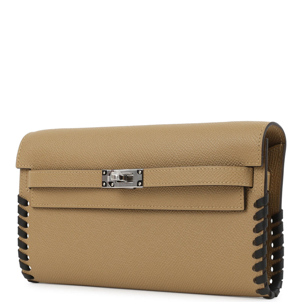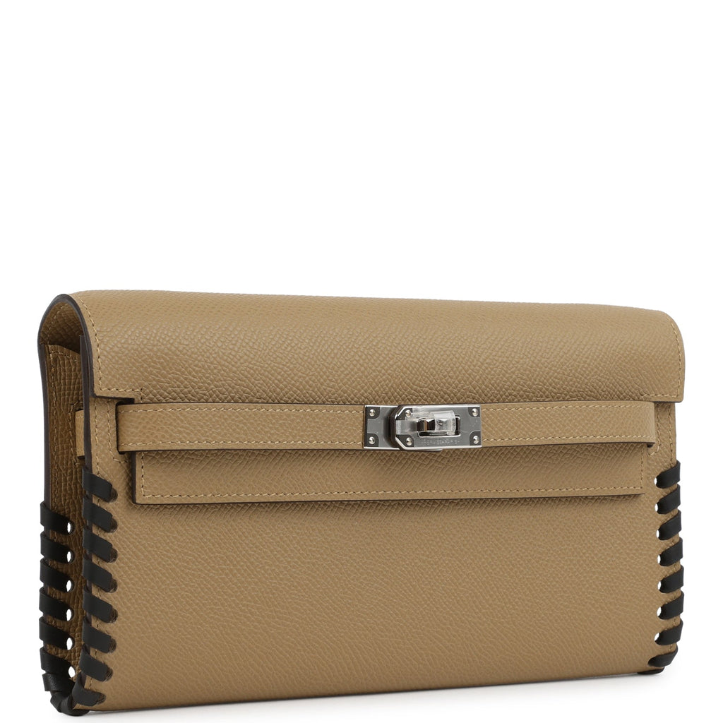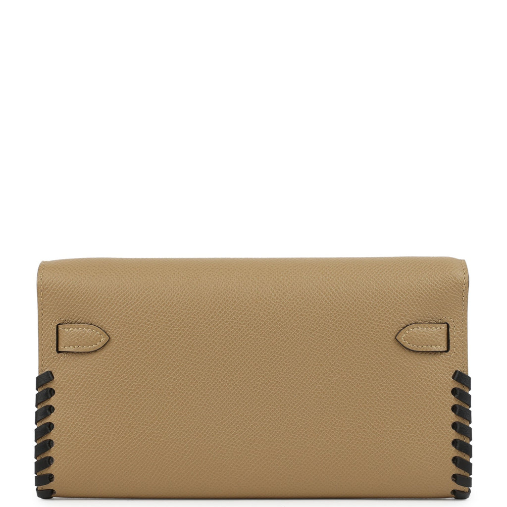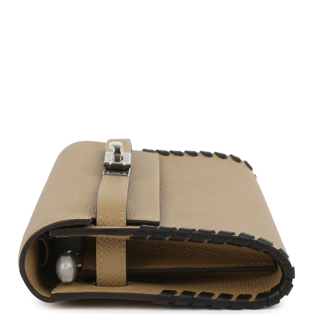 Hermes Kelly To Go Tressage Wallet Poussiere and Black Epsom Palladium Hardware