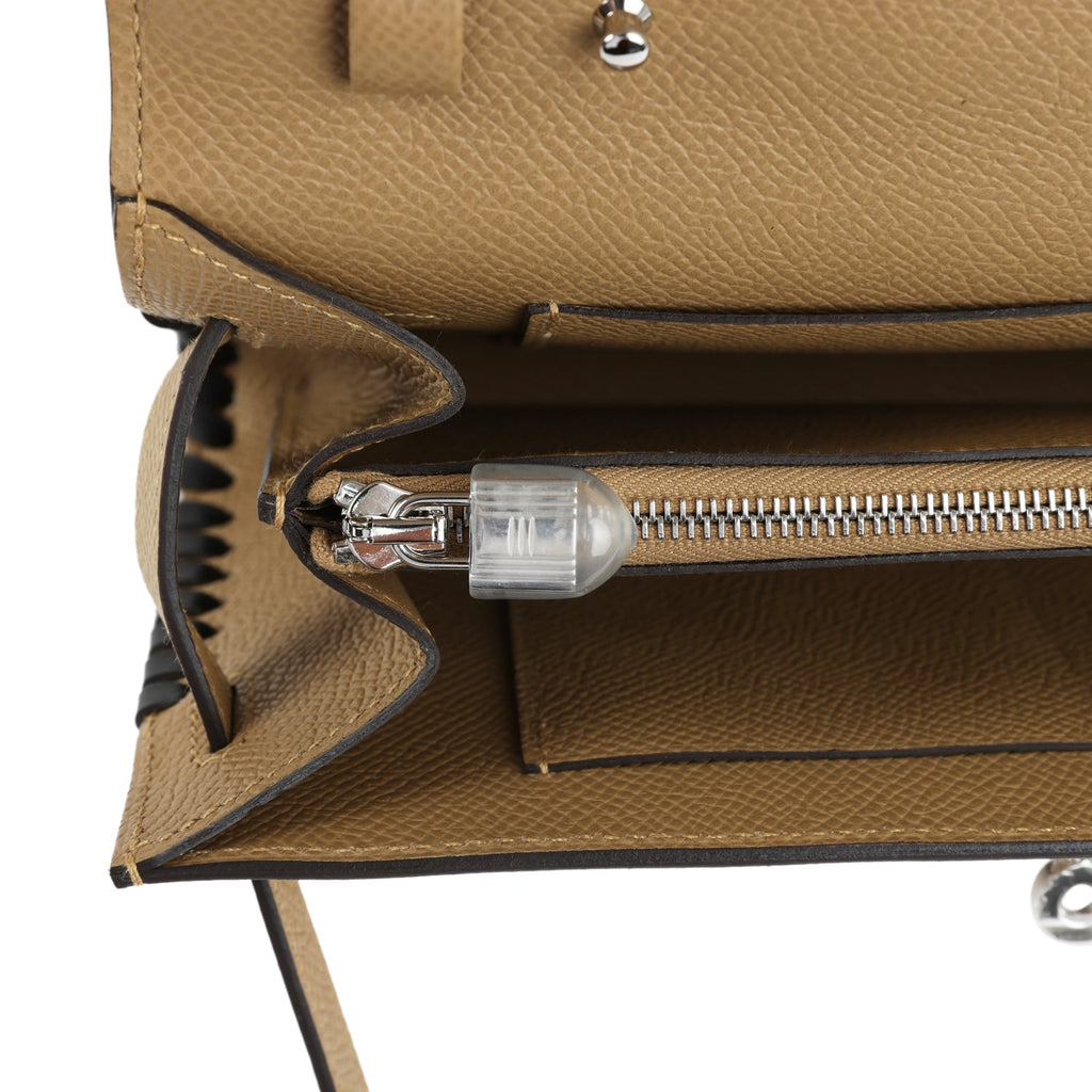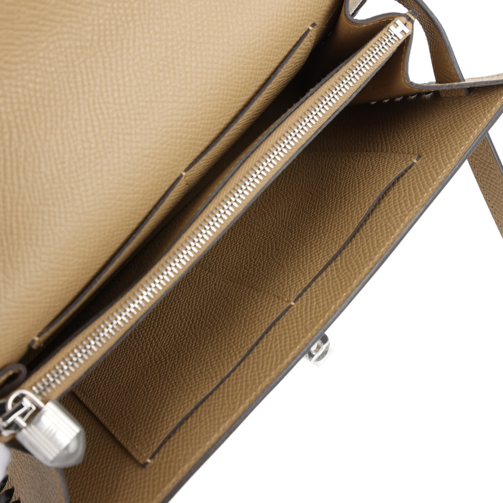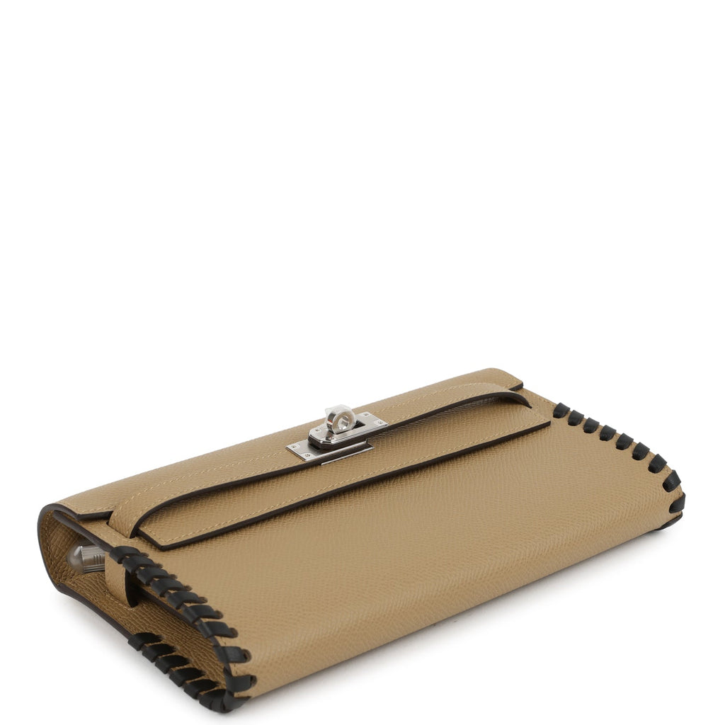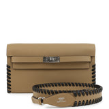 Hermes Kelly To Go Tressage Wallet Poussiere and Black Epsom Palladium Hardware