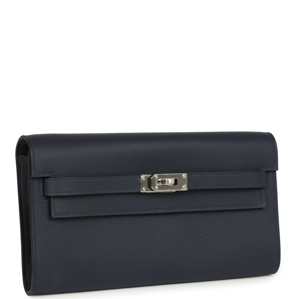 Hermes Kelly Wallet To Go Bleu Nuit Evercolor Palladium Hardware