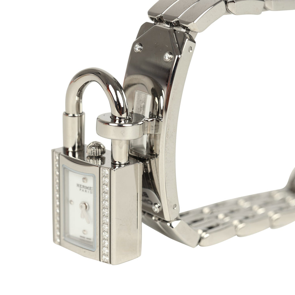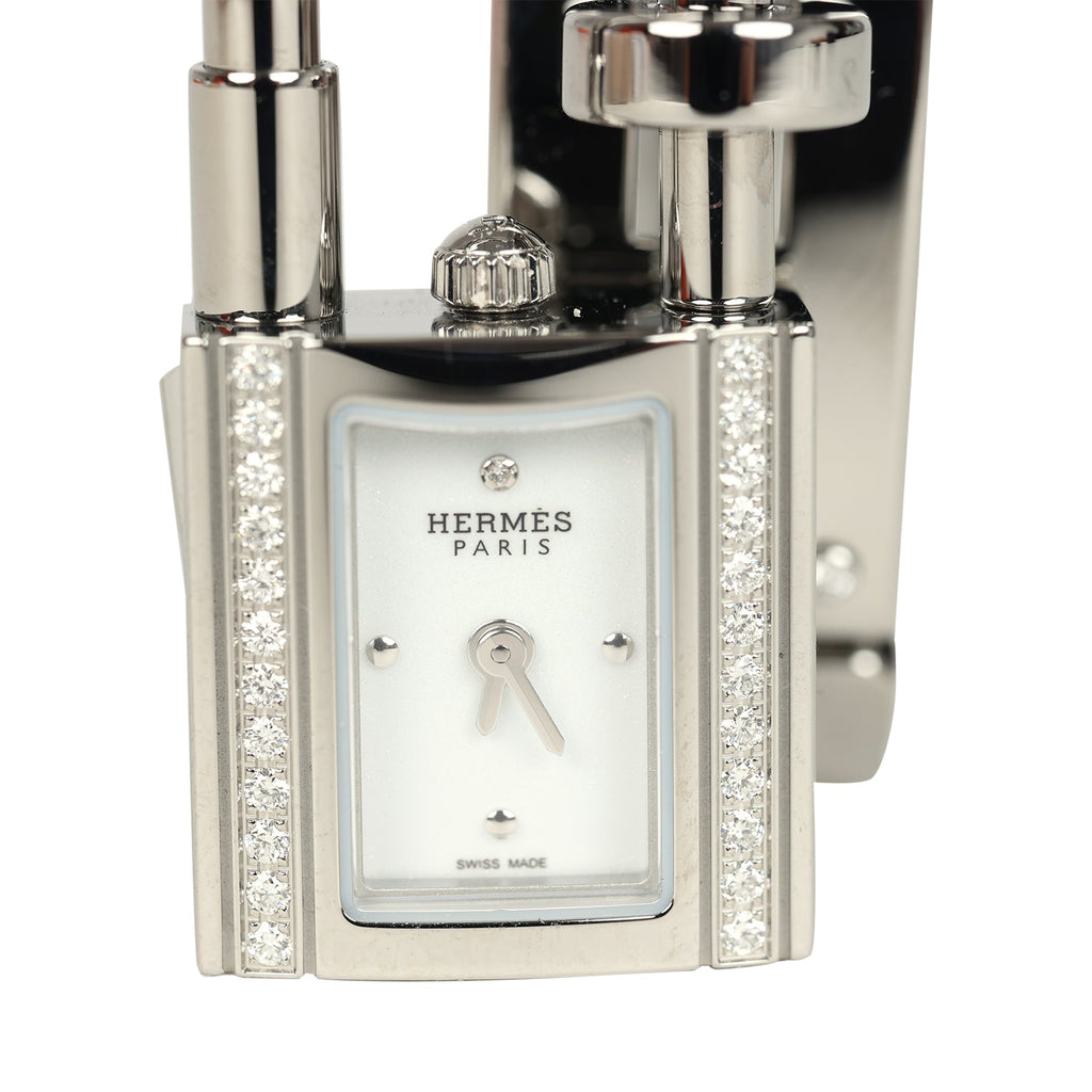 Hermes Kelly Watch Mini Model 16mm Stainless Steel Hardware & White Diamonds