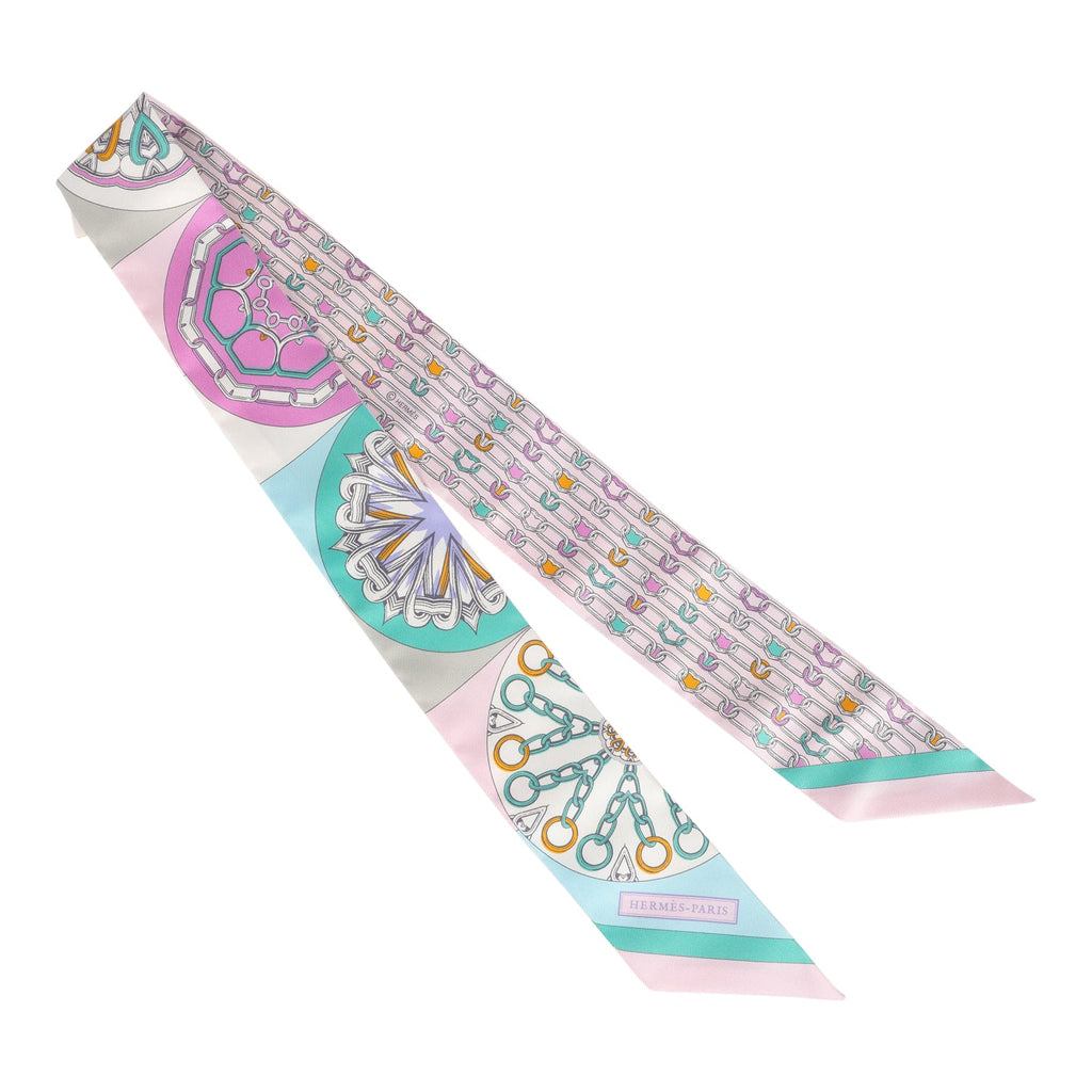 Hermes "L' Effet Kaleidoscope" Rose, Turquoise Multi Silk Twilly