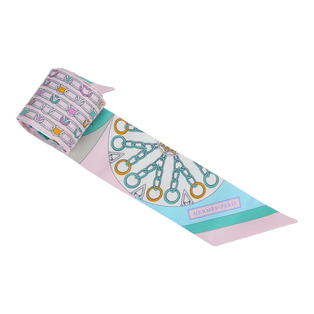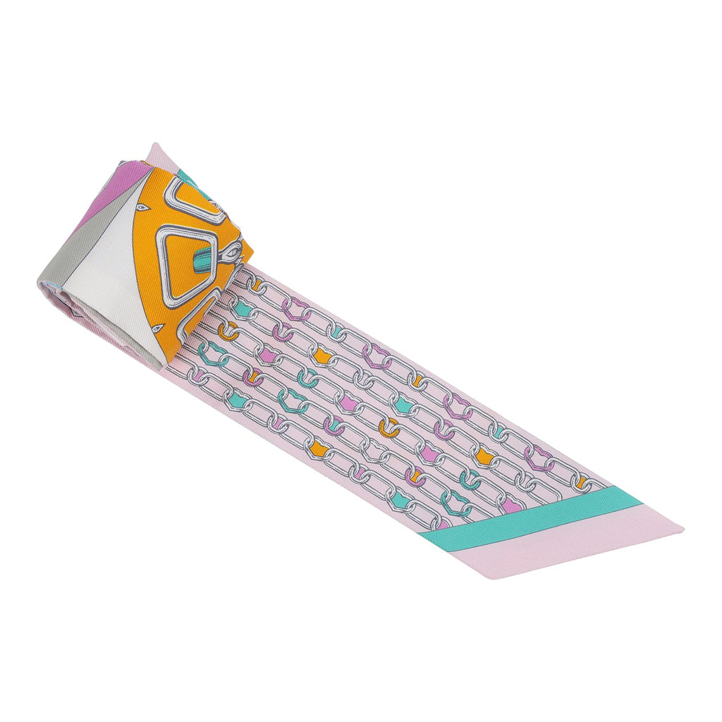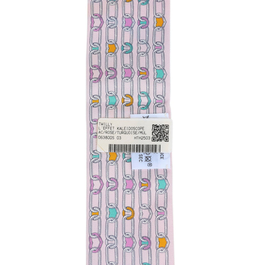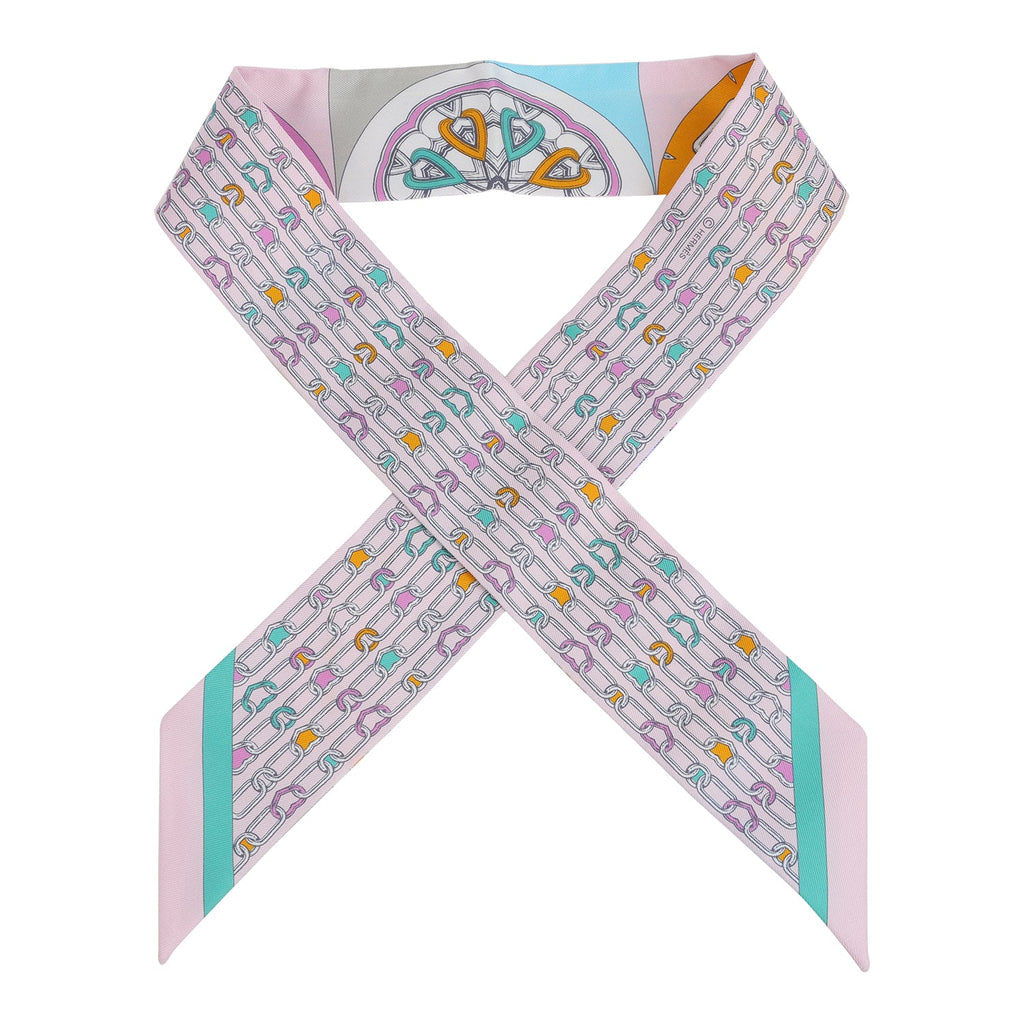 Hermes "L' Effet Kaleidoscope" Rose, Turquoise Multi Silk Twilly