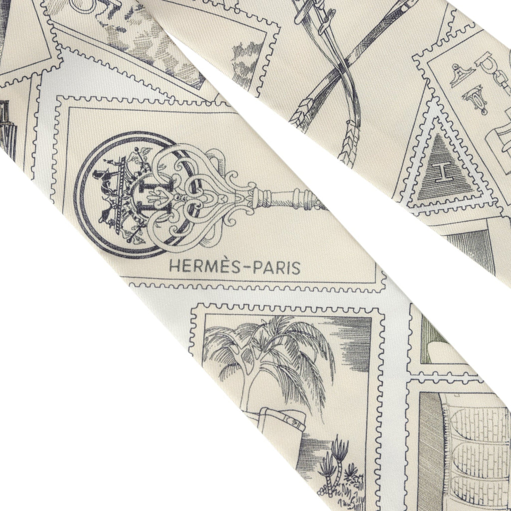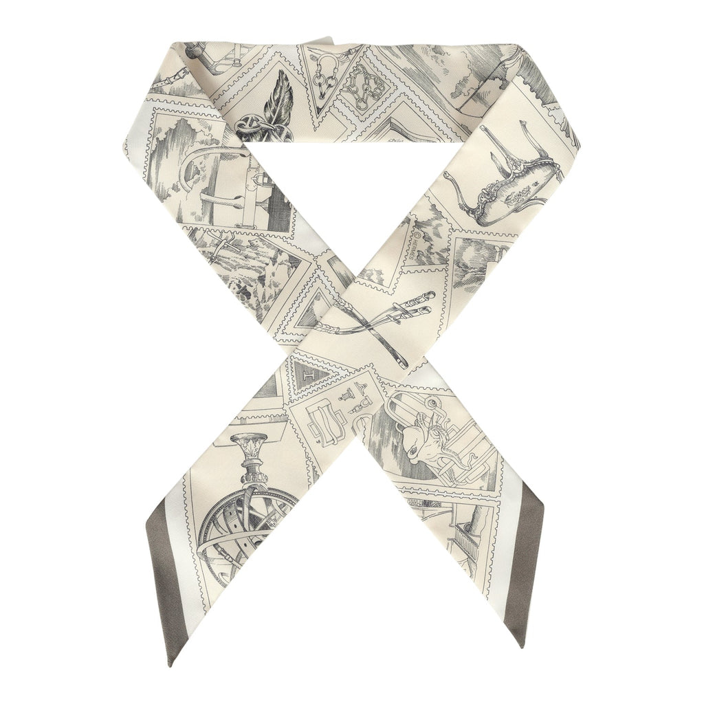 Hermes "Le Philateliste Du Faubourg" Parchemin and Graphite Multi Silk Twilly Pair