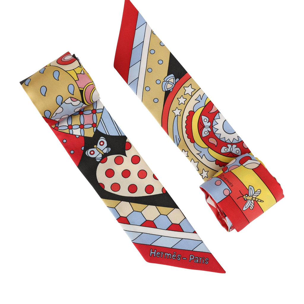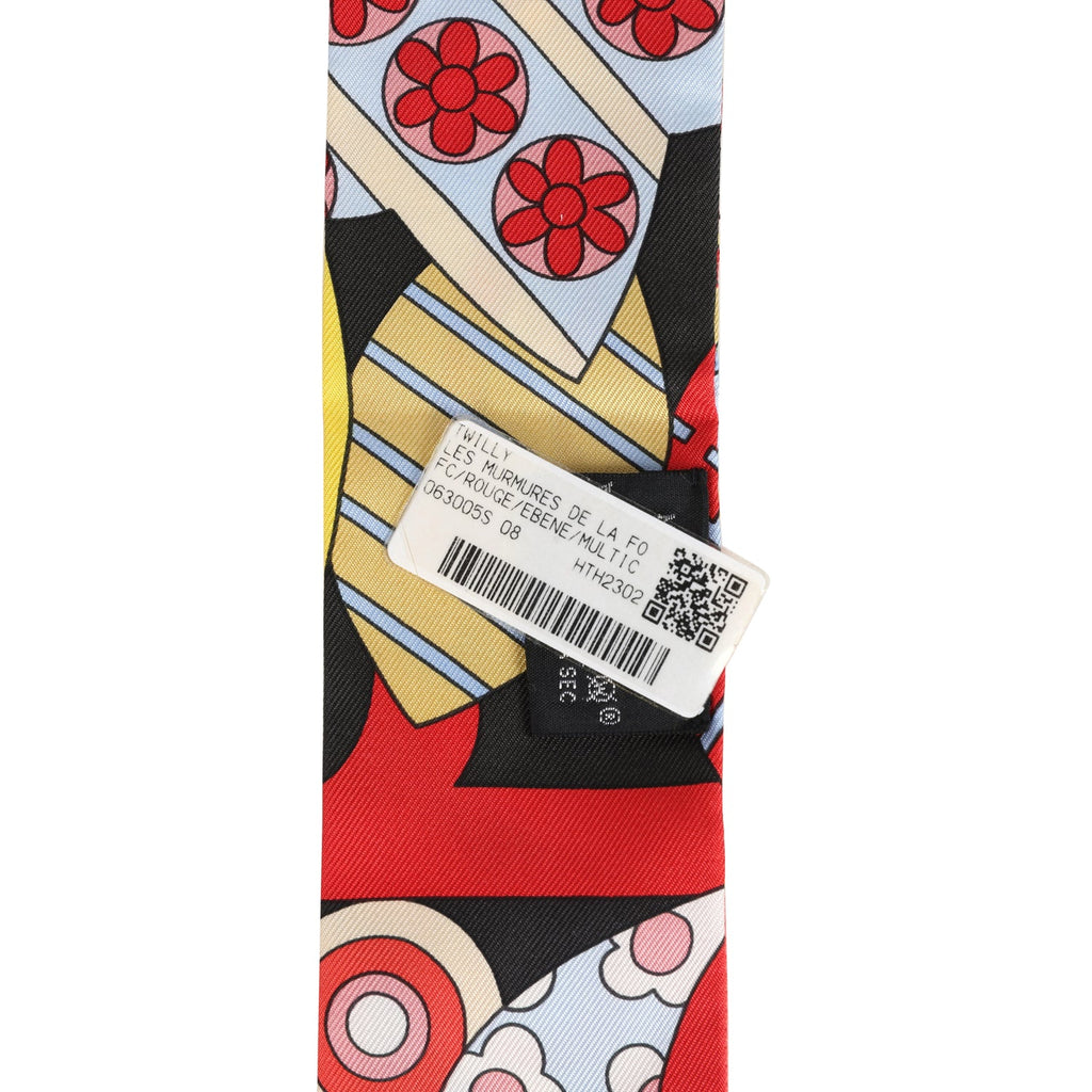 Hermes "Les Murmures De La Foret" Rouge and Ebene Multi Silk Twilly Pair