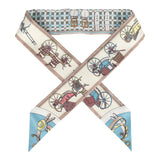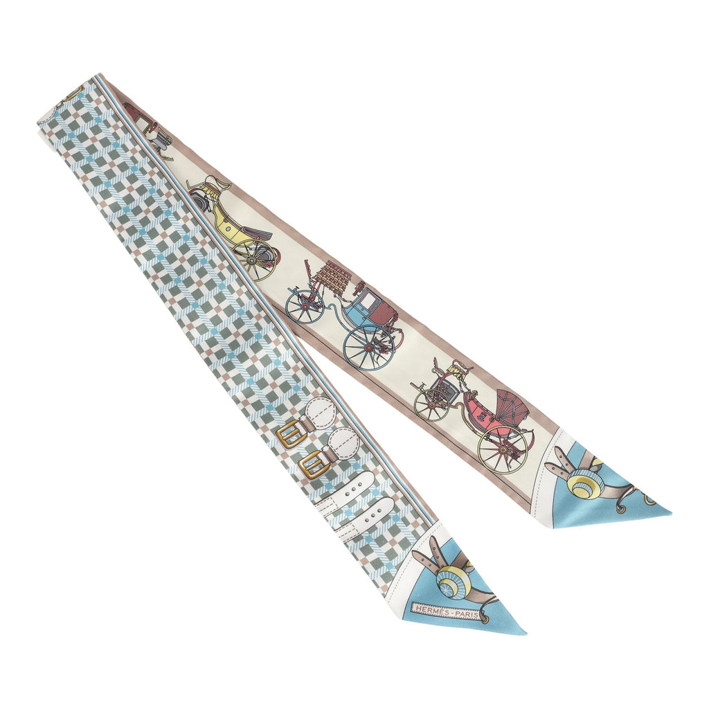 Hermes "Les Voitures Nouvelle" Vert Amande, Bleu Glacier and Beige Silk Twilly