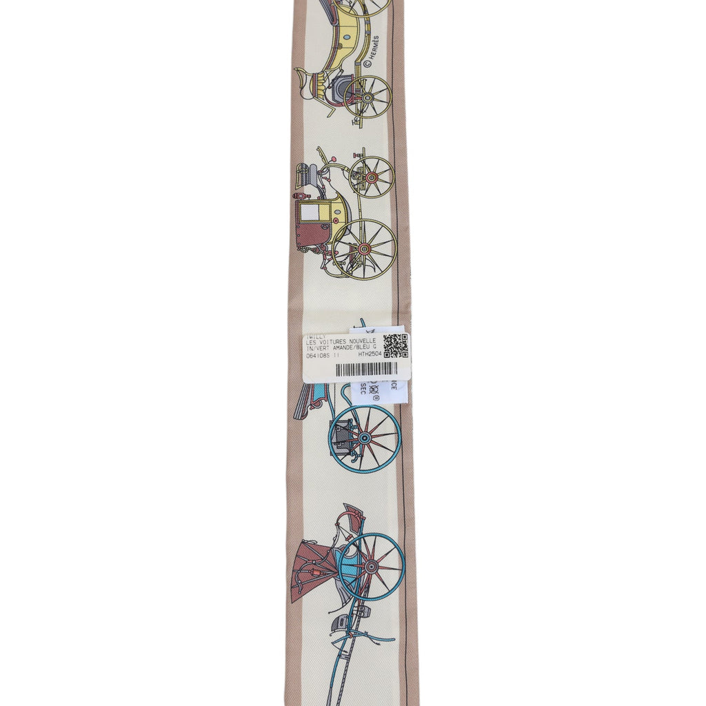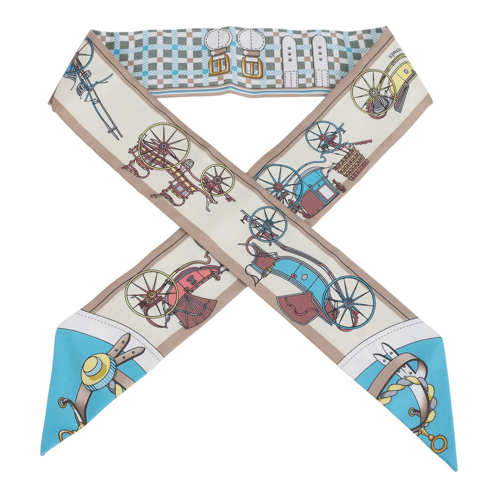 Hermes "Les Voitures Nouvelle" Vert Amande, Bleu Glacier and Beige Silk Twilly
