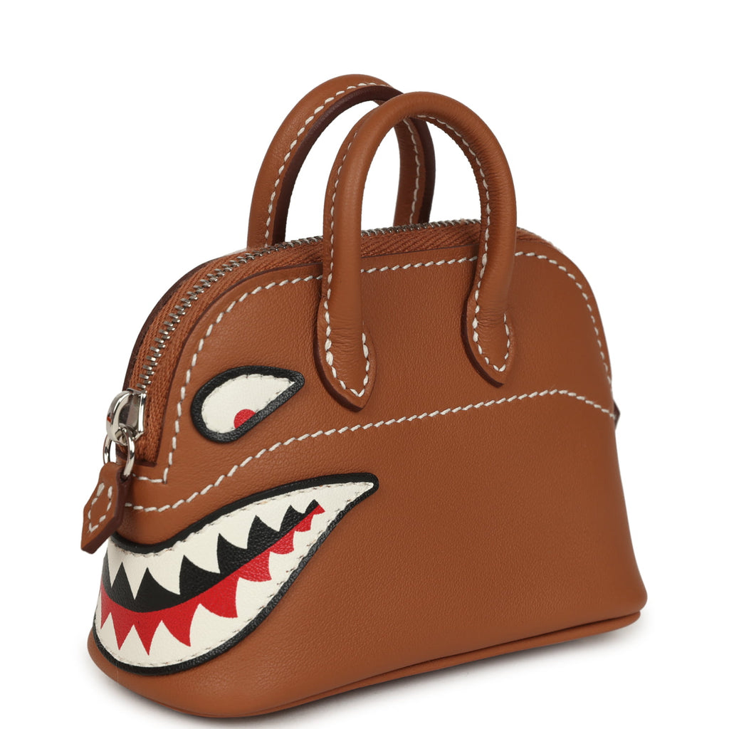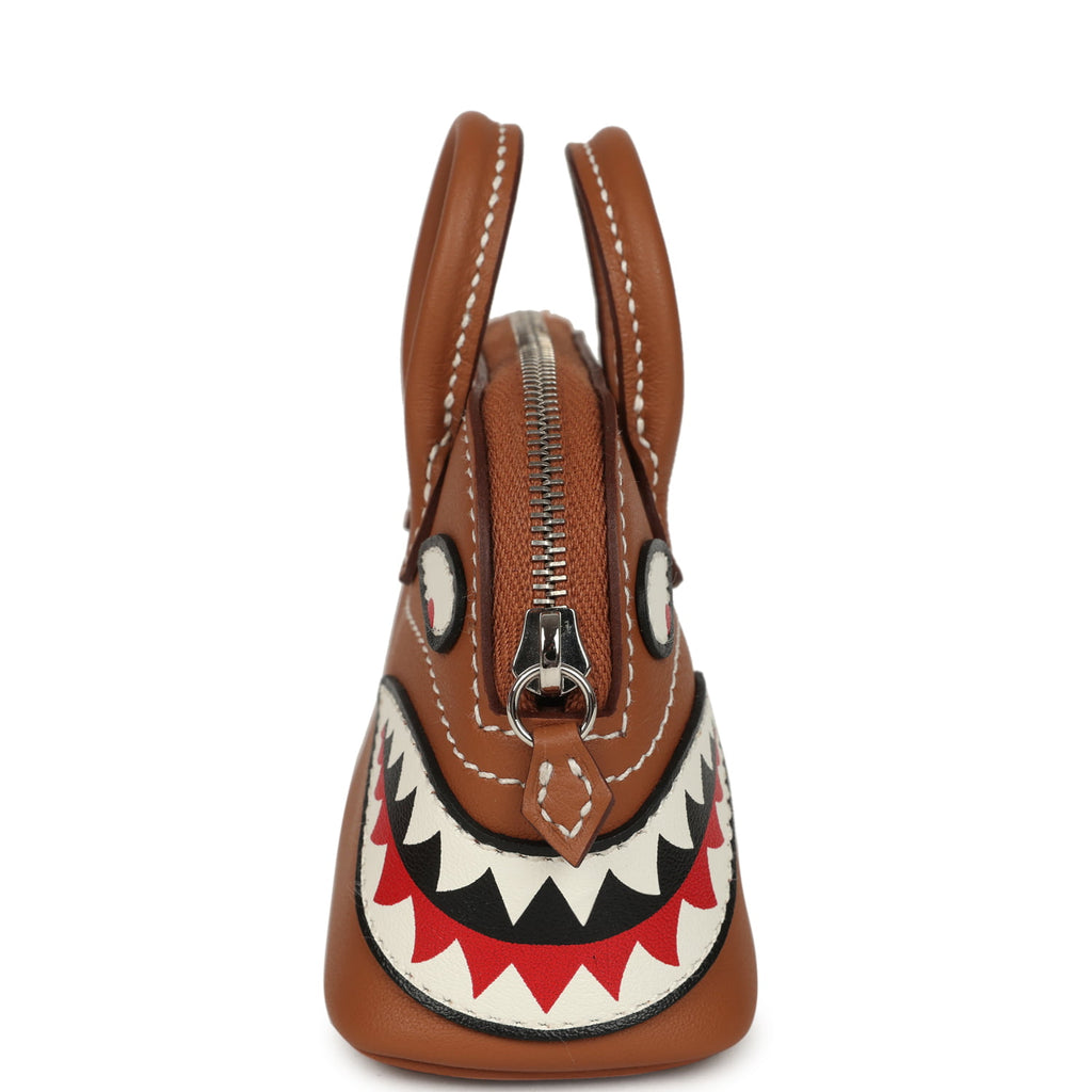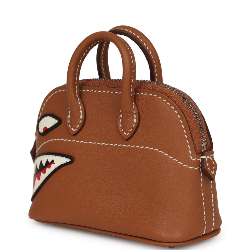 Hermes Mini Bolide Shark Bag Charm Gold and White Swift Palladium Hardware